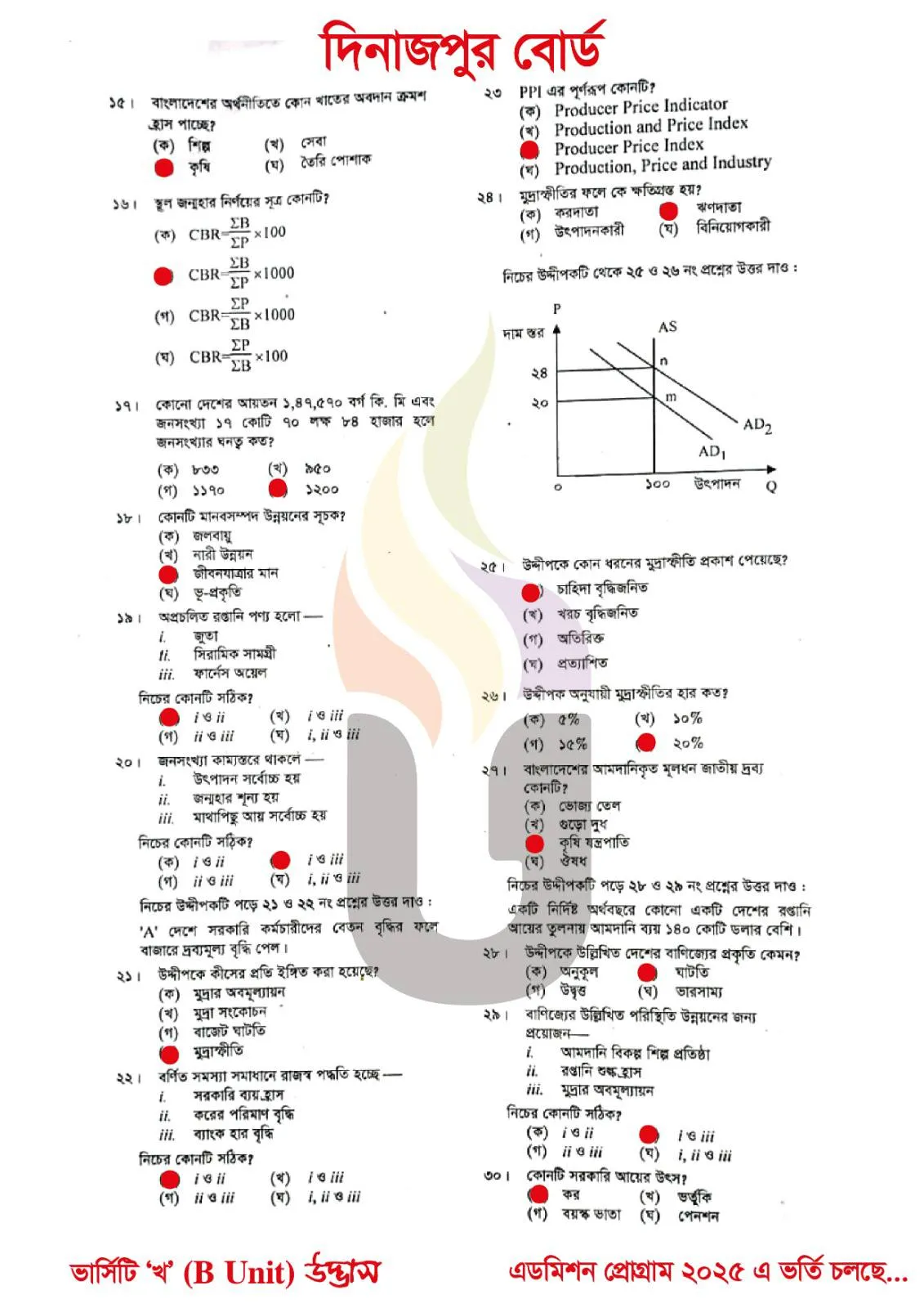 Economics 2nd Paper MCQ Question solution Dinajpur Board HSC 2025