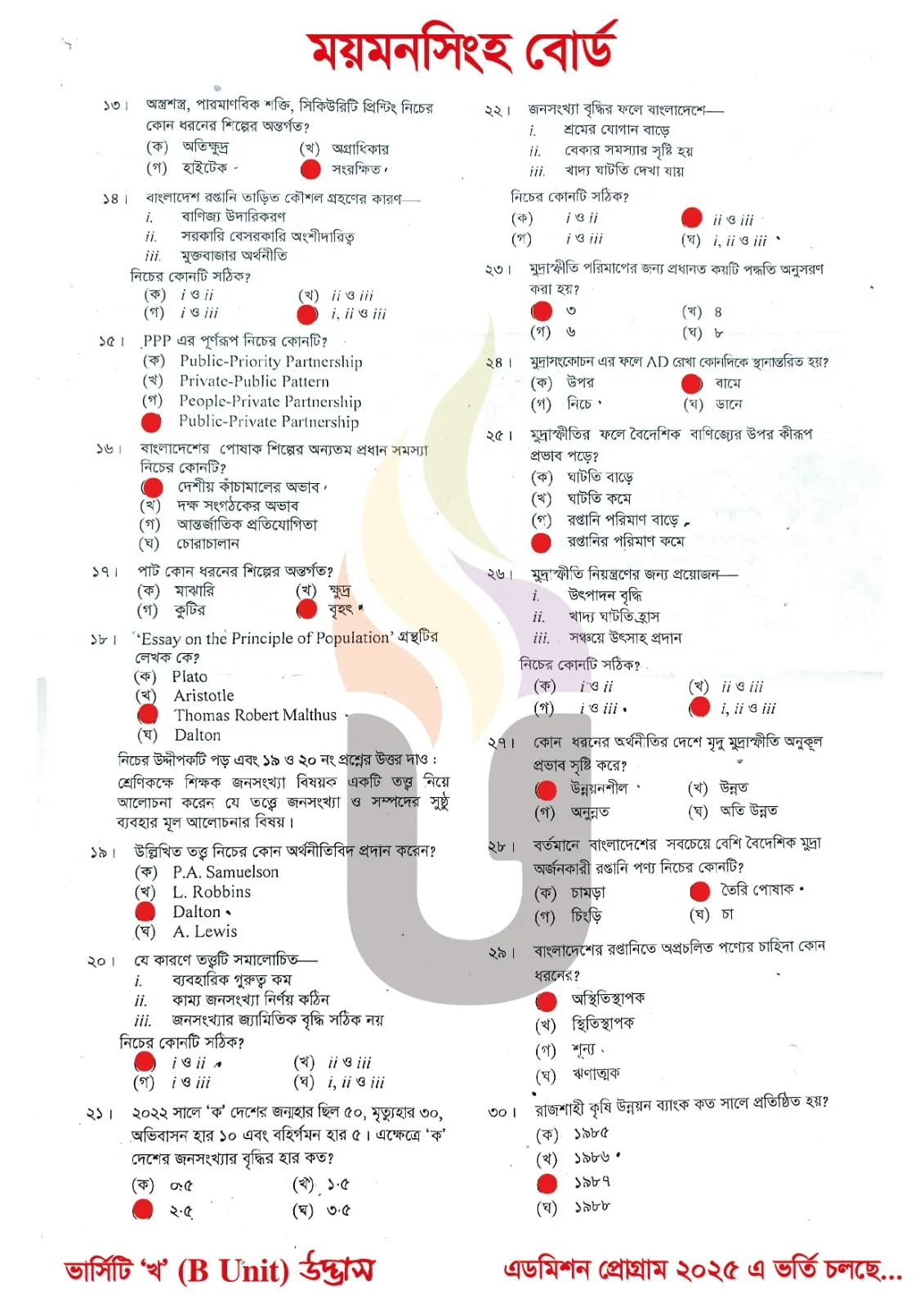 Economics 2nd Paper MCQ Exam Question Solution Mymensingh Board HSC 2025