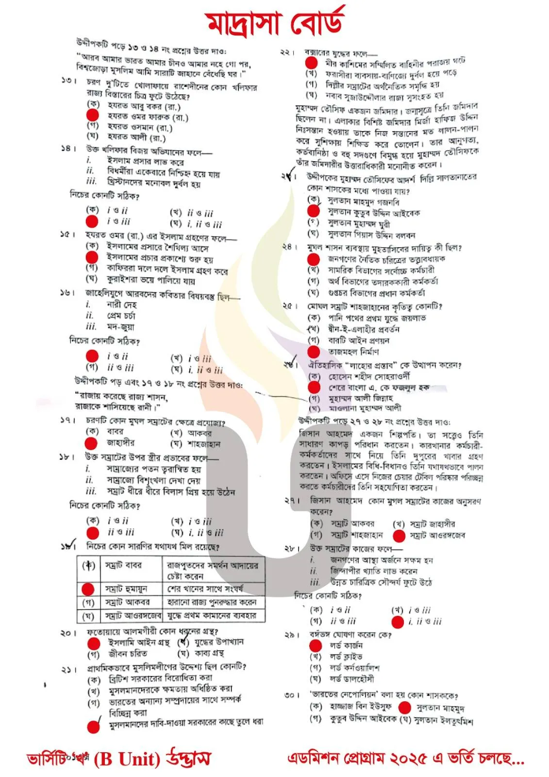 Islamic History Question 2025 Madrasah Board