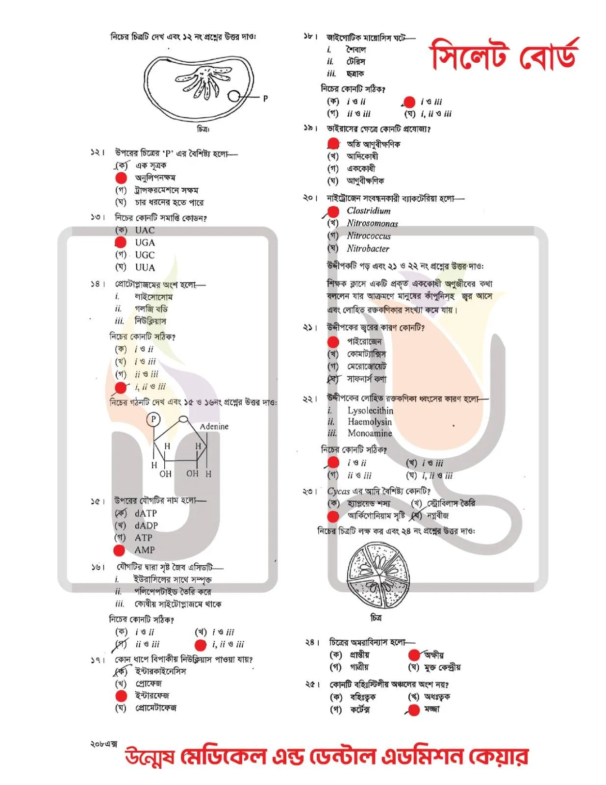 সিলেট বোর্ড এইচএসসি জীববিজ্ঞান ১ম পত্র MCQ প্রশ্ন সমাধান ২০২৫
