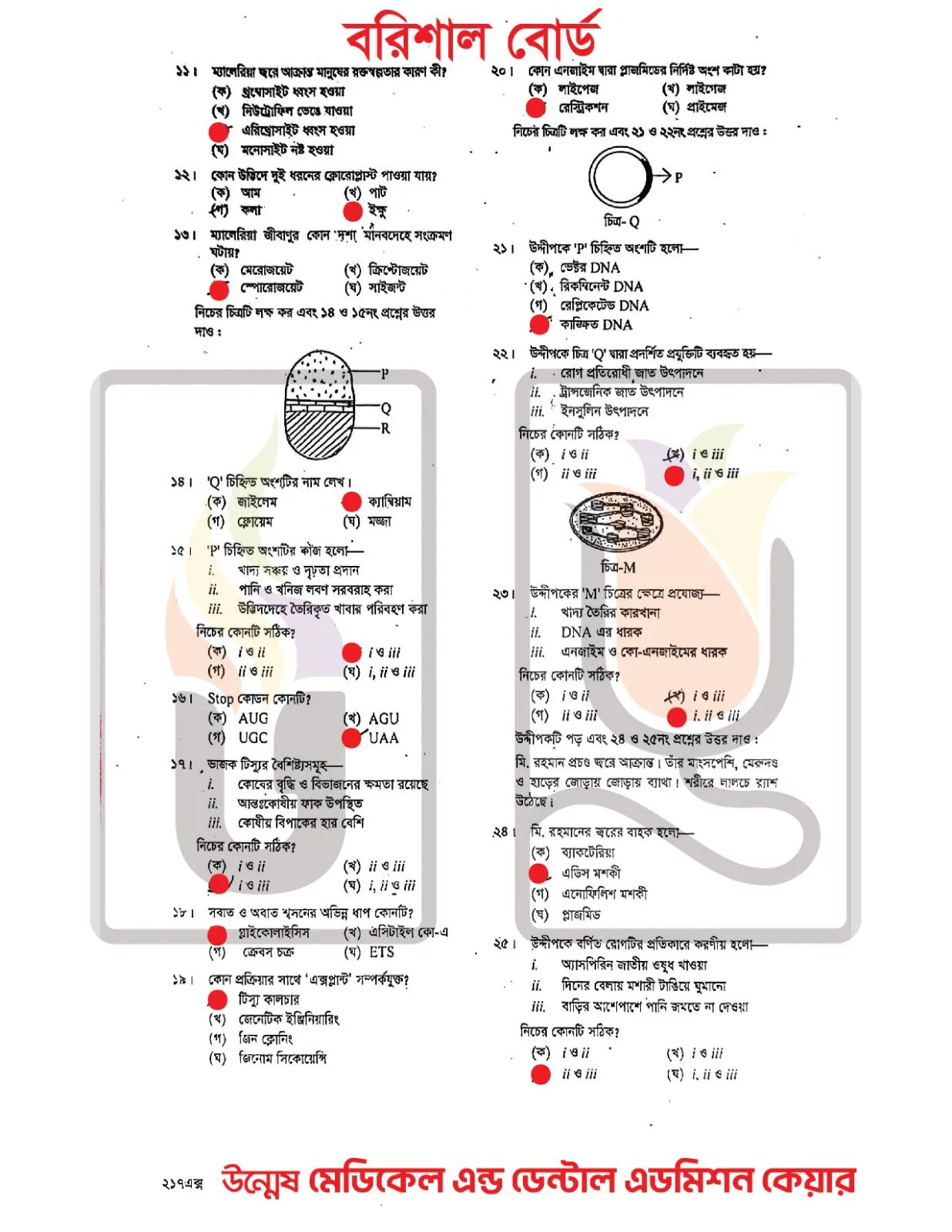 বরিশাল বোর্ড এইচএসসি জীববিজ্ঞান ১ম পত্র MCQ প্রশ্ন সমাধান ২০২৫