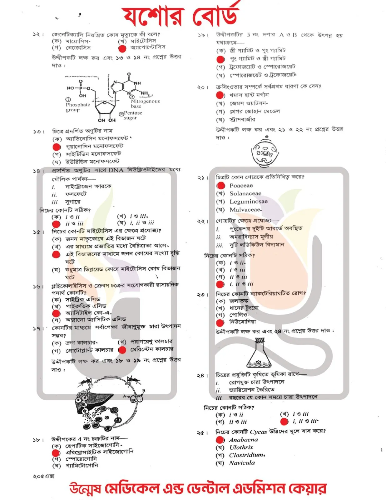 যশোর বোর্ড এইচএসসি জীববিজ্ঞান ১ম পত্র MCQ প্রশ্ন সমাধান ২০২৫