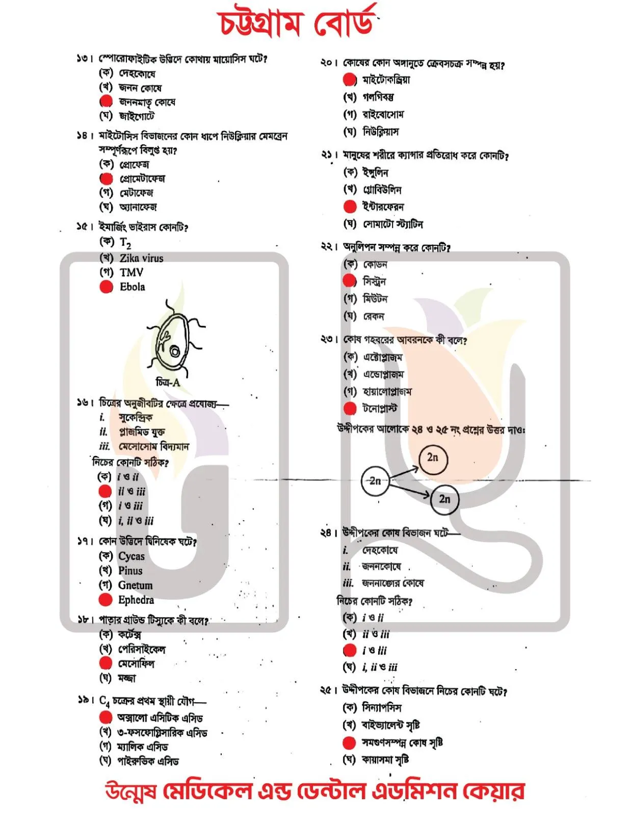 চট্টগ্রাম বোর্ড এইচএসসি জীববিজ্ঞান ১ম পত্র প্রশ্ন সমাধান ২০২৫
