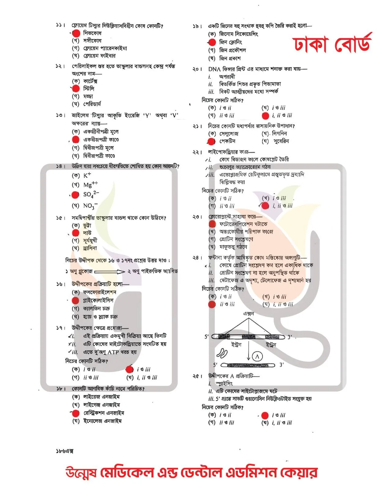 ঢাকা বোর্ড এইচএসসি জীববিজ্ঞান ১ম পত্র MCQ প্রশ্ন সমাধান ২০২৫