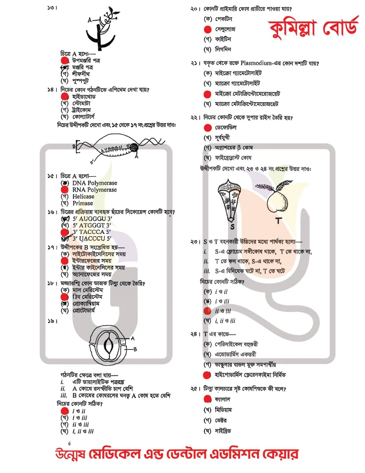 কুমিল্লা বোর্ড এইচএসসি জীববিজ্ঞান ১ম পত্র MCQ প্রশ্ন সমাধান ২০২৫