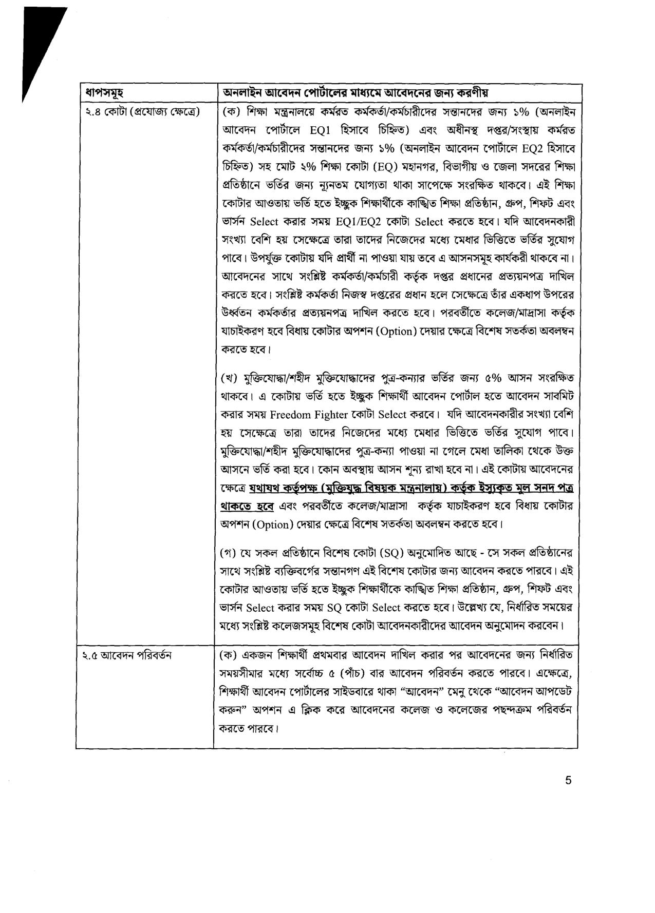 - কলেজ/সমমানের প্রতিষ্ঠানকে তাদের ভর্তি সংক্রান্ত সকল তথ্য ওয়েবসাইট ও নোটিশ বোর্ডে প্রকাশ করতে হবে।