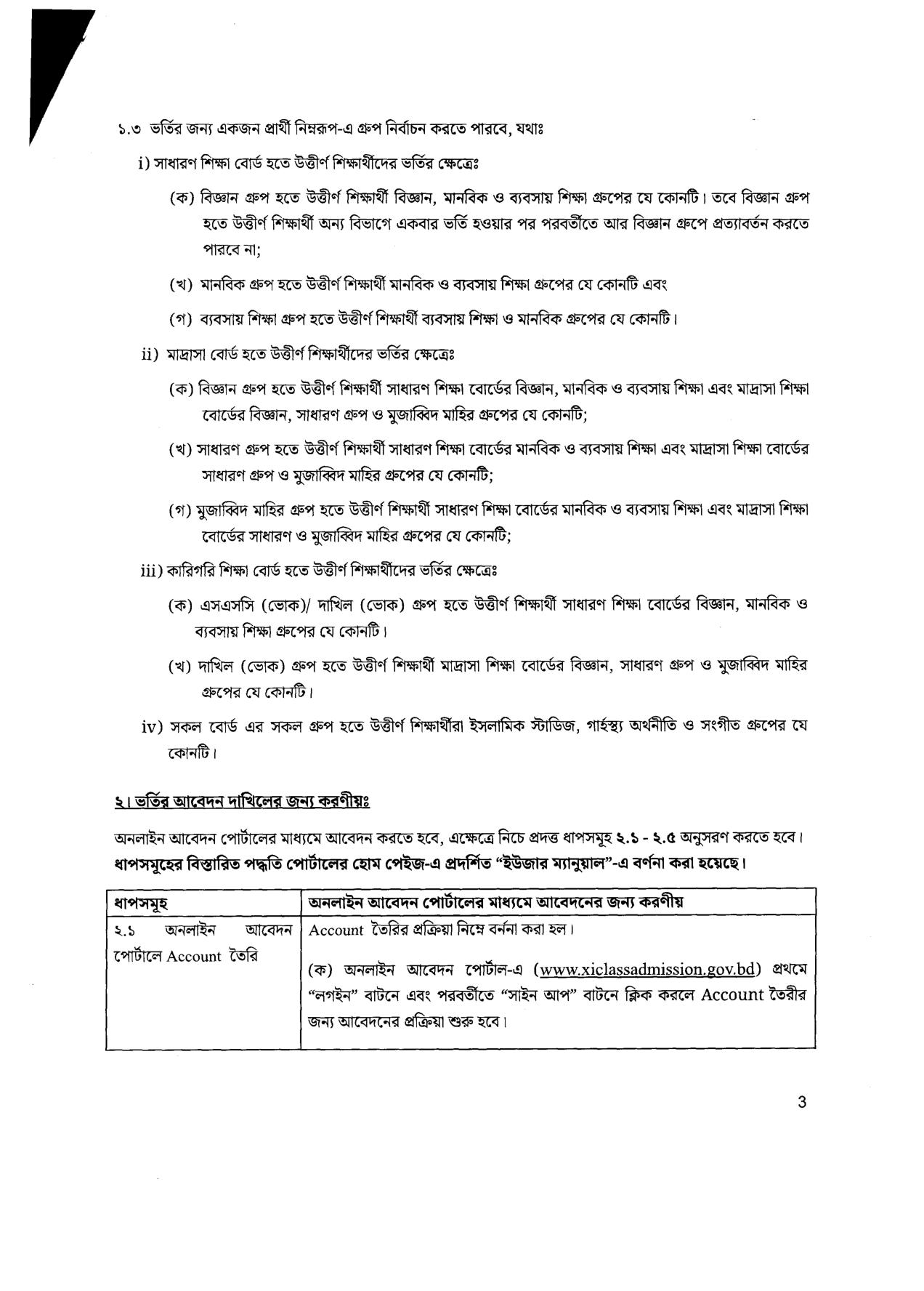 অনুসরণপূর্বক কলেজ/সমমানের প্রতিষ্ঠান বাের্ড কর্তৃক নির্ধারিত আসন সংখ্যা (বিজ্ঞান, মানবিক ও ব্যবসায় শিক্ষা গ্রুপ, শিট, পুরুষ/মহিলা/সহশিক্ষা, ভার্সন) এবং বাের্ড কর্তৃক নির্ধারিত ভর্তি ফিসহ অনুমােদিত অন্যান্য সকল ফি, ভর্তির ন্যূনতম যােগ্যতা ইত্যাদি তথ্য ভর্তি বিজ্ঞপ্তিতে উল্লেখ করে প্রতিষ্ঠানের নােটিশ বাের্ড এবং ওয়েবসাইটে প্রকাশ করবে ।
