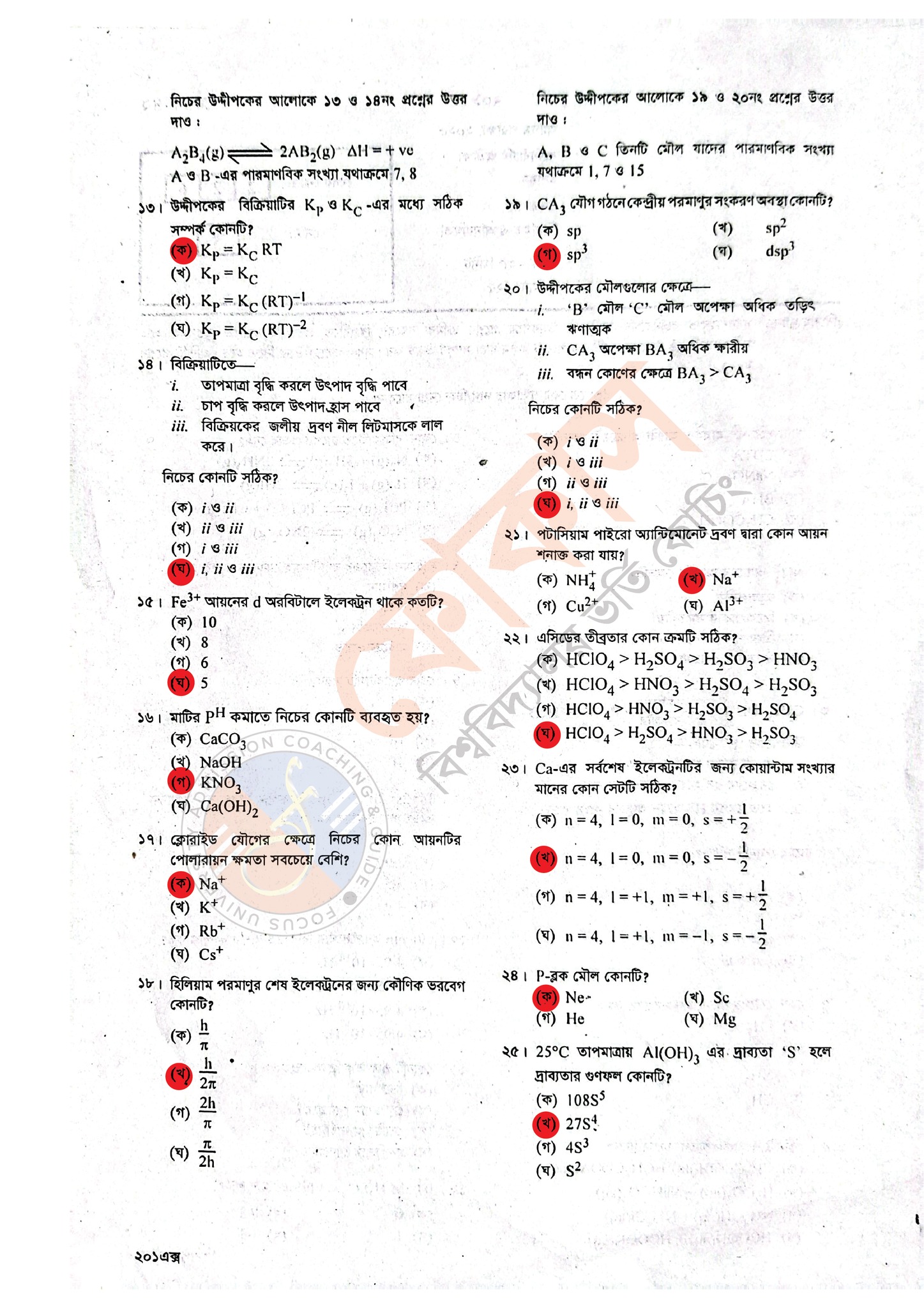 আলিম রসায়ন ১ম পত্র পরীক্ষার উত্তর ২০২৫