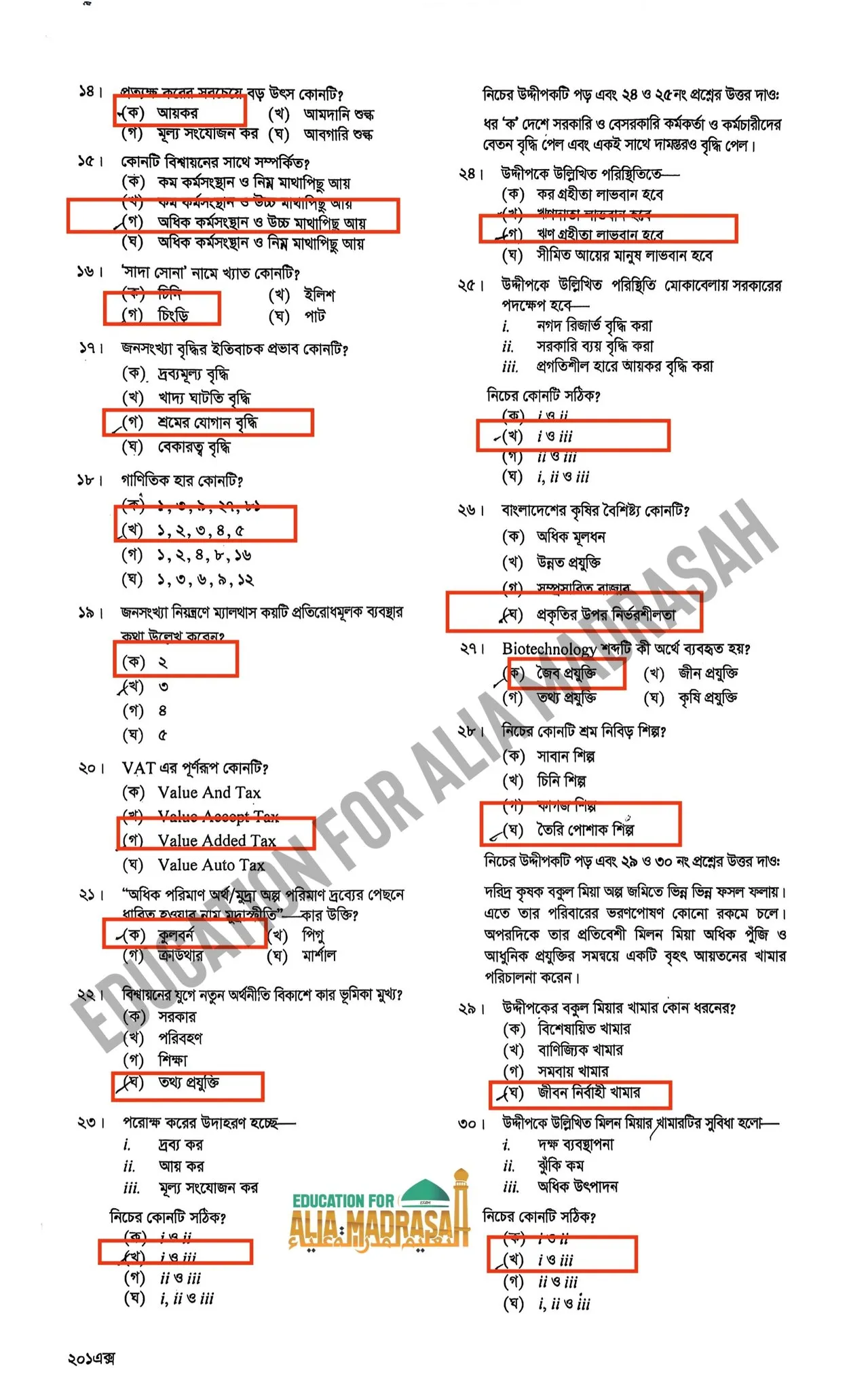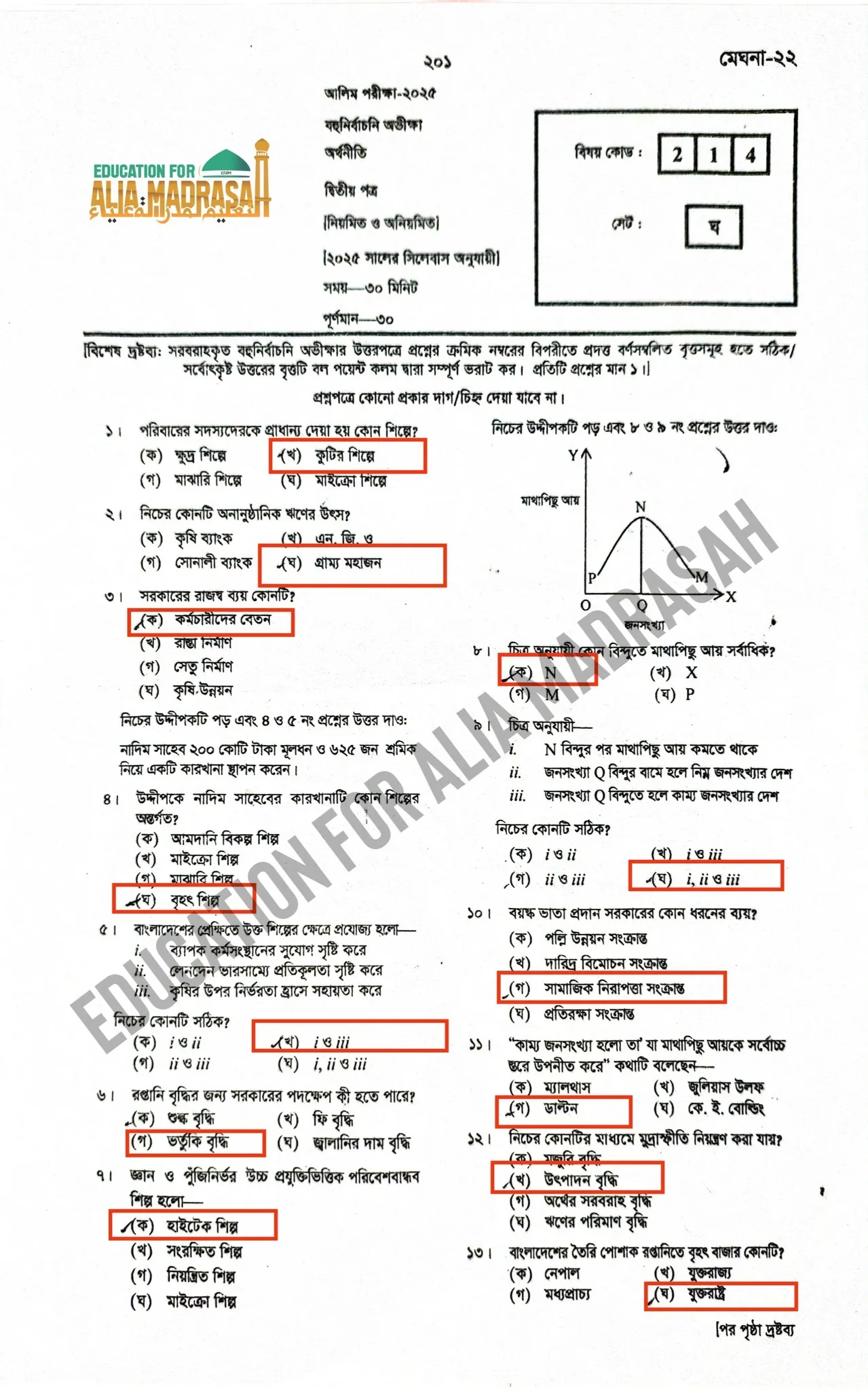 Alim অর্থনীতি ২য় পত্র MCQ প্রশ্ন সমাধান ২০২৫ PDF