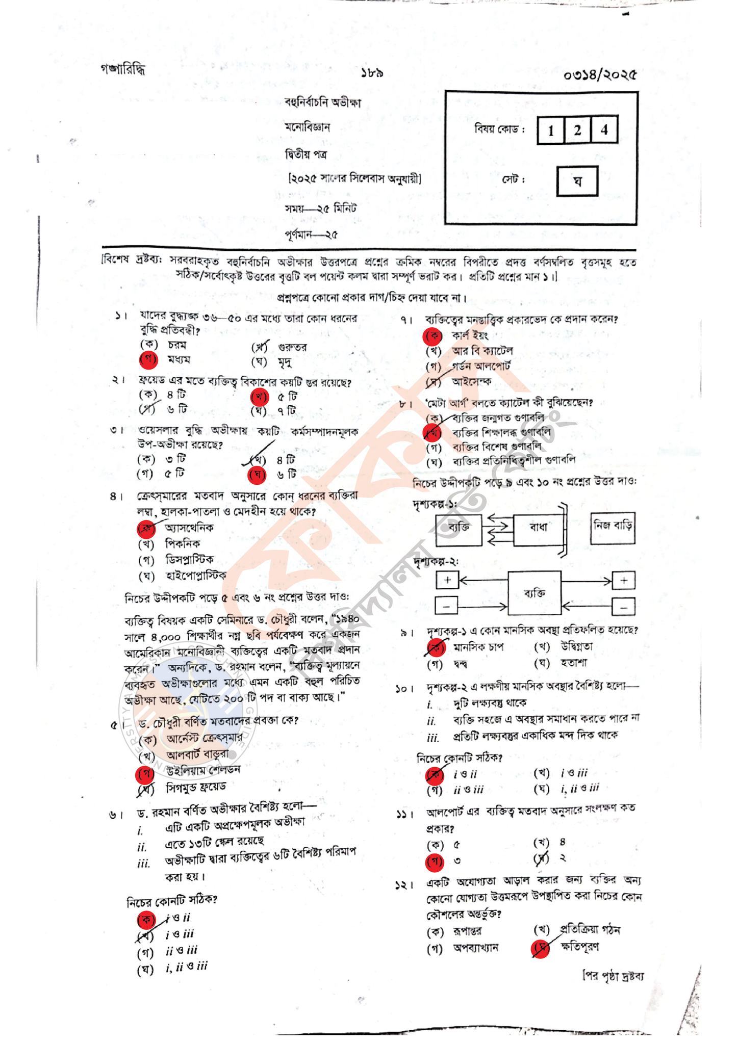 | বিষয়ের নাম | মনোবিজ্ঞান ২য় পত্র |