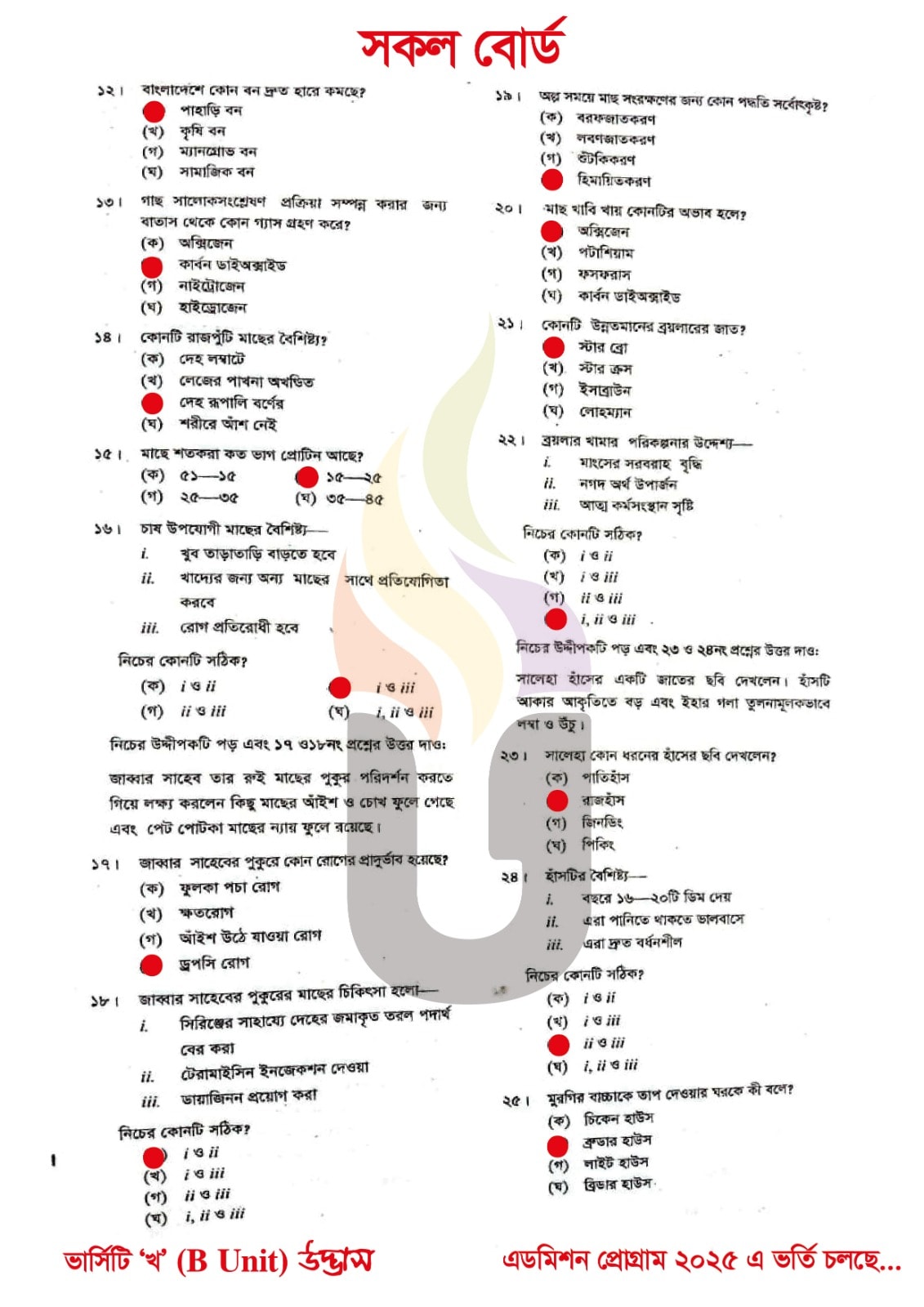 এইচএসসি ২০২৫ কৃষিশিক্ষা ২য় পত্র MCQ উত্তরমালা