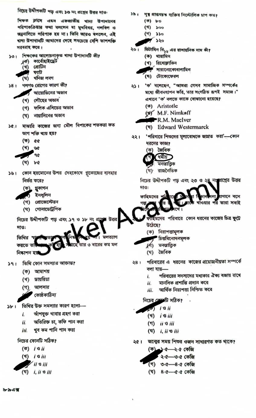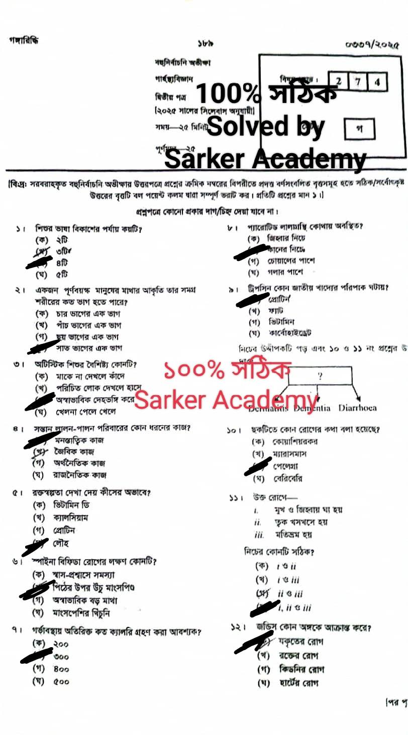 | বিষয়ের নাম | গার্হস্থ্য বিজ্ঞান ২য় পত্র |