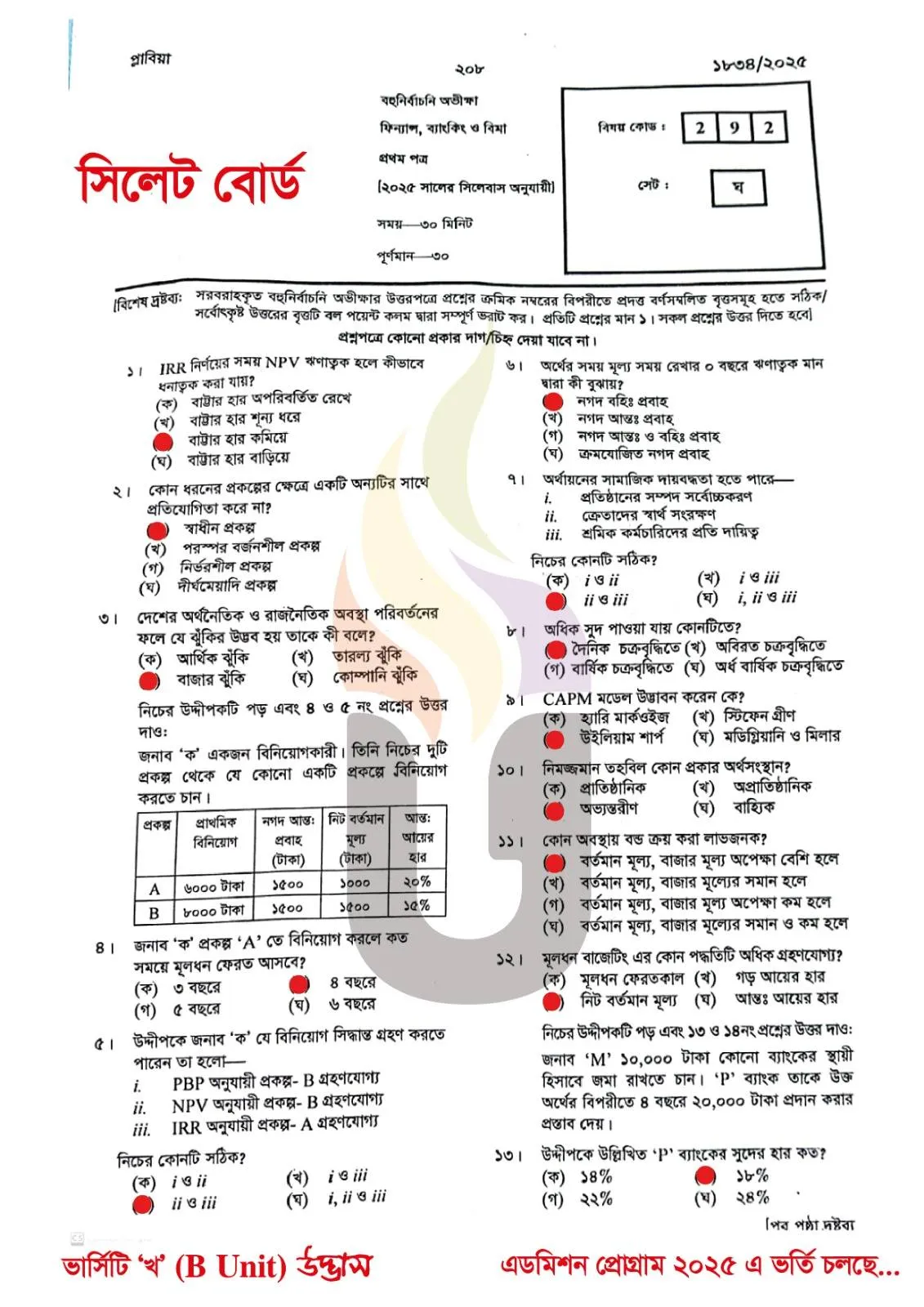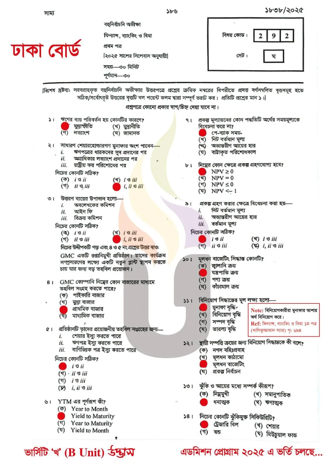 HSC Means Higher Secondary Certificate Exam, Finance Banking and Insurance 1st Paper Means Finance Banking O Bima Prothom Potro and MCQ means Multiple-Choice Question. In this post you will find HSC Finance Banking and Insurance 1st Paper Question Solve 2025. Finance Banking and Insurance 1st Paper Subject Code is 292. In this exam students have to Answer 30 Marks MCQ Questions within 30 Minutes. Students have to Carefully fill up the OMR sheet with Exam Year, Roll Number, Registration Number, Subject Code, Set Code & Correct Answer.