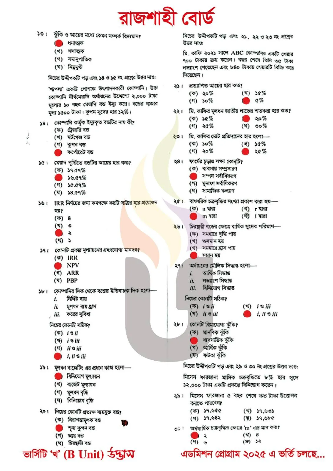 Finance Banking and Insurance 1st Paper MCQ Question Solution Rajshahi Board HSC 2025
