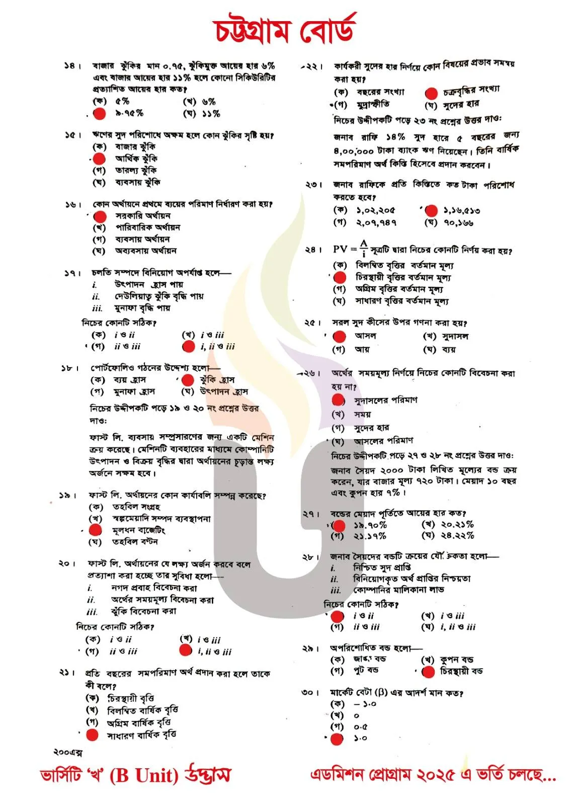 Finance Banking and Insurance 1st Paper MCQ Question With Answers 2025 Chittagong Board HSC 2025
