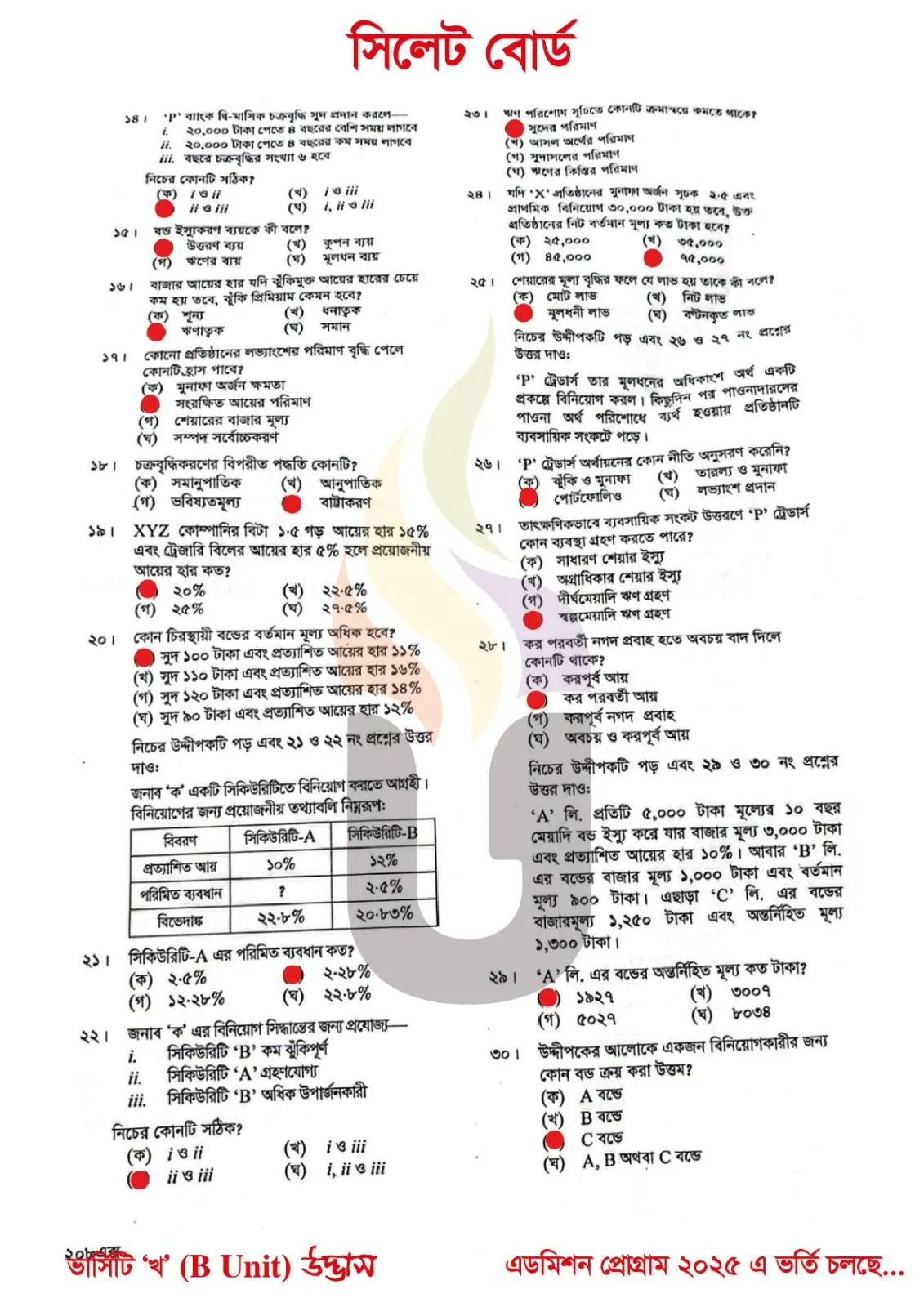 Finance Banking and Insurance 1st Paper MCQ Exam Question Solution Sylhet Board HSC 2025