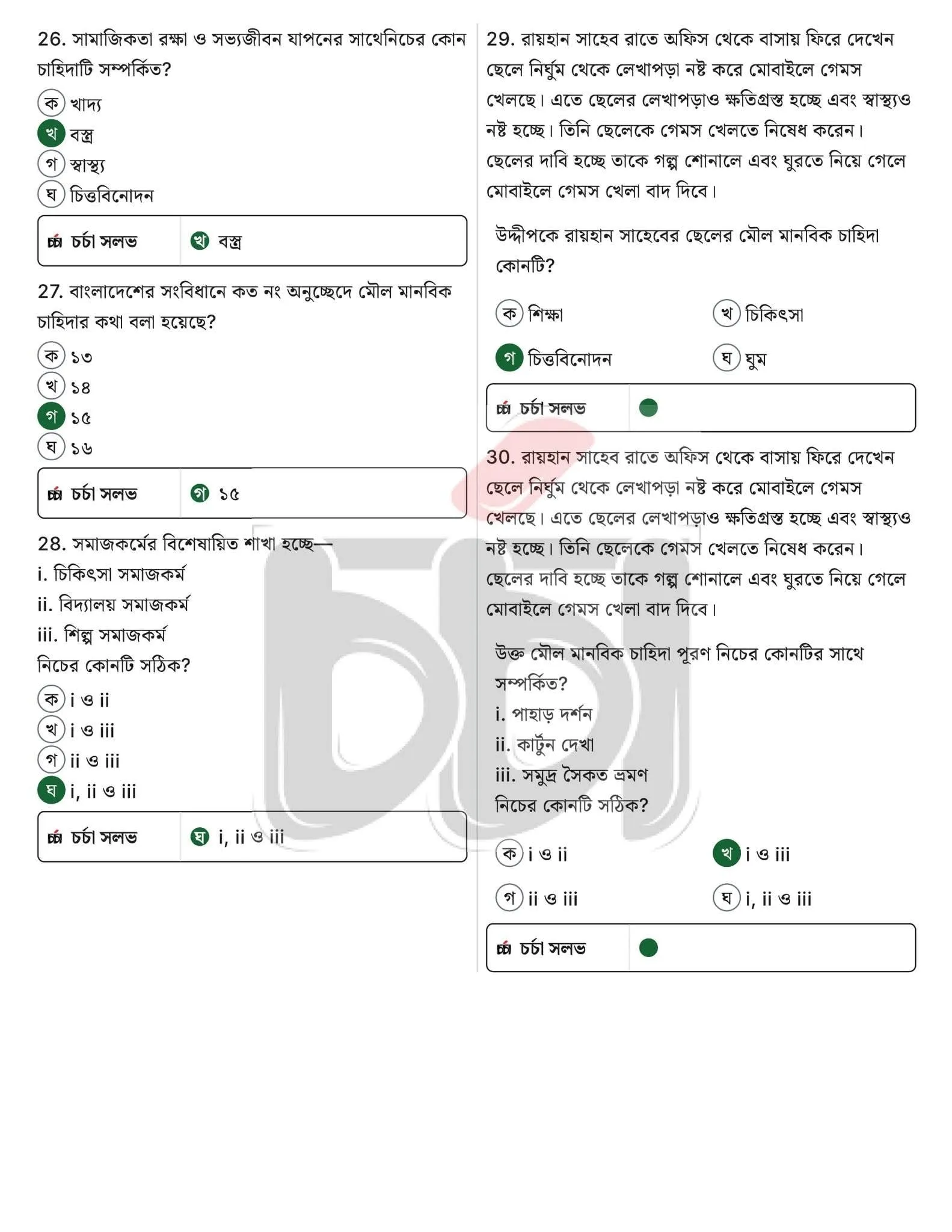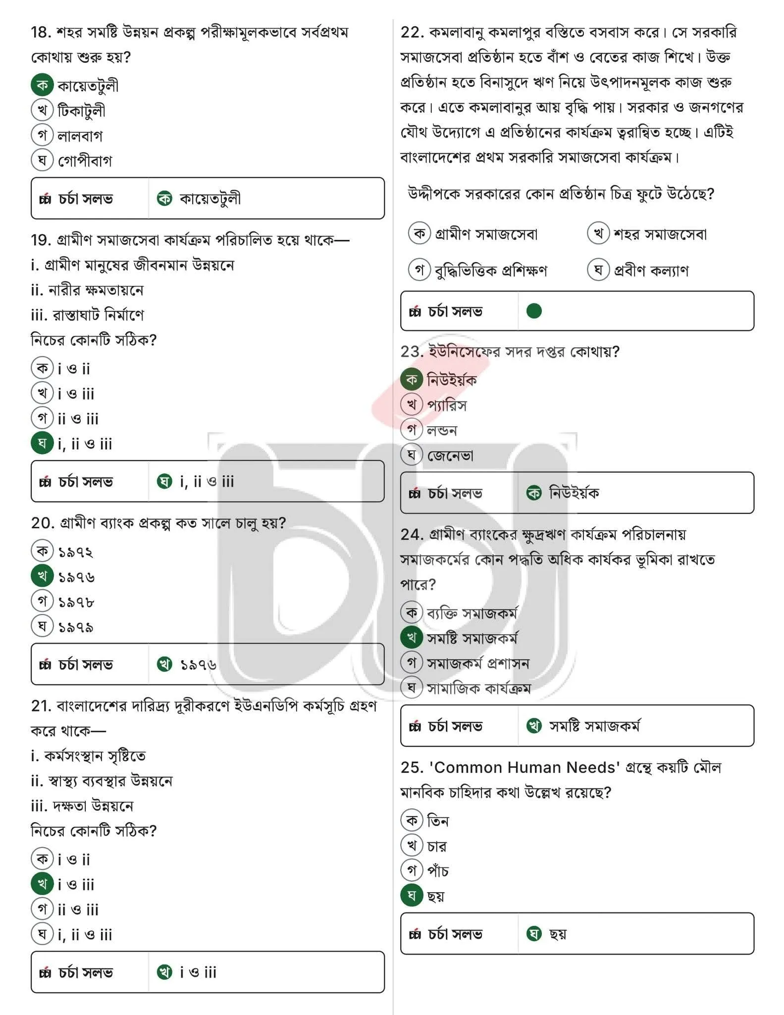 এইচএসসি সমাজকর্ম ২য় পত্র MCQ প্রশ্নের সমাধান ২০২৫ pdf Download
