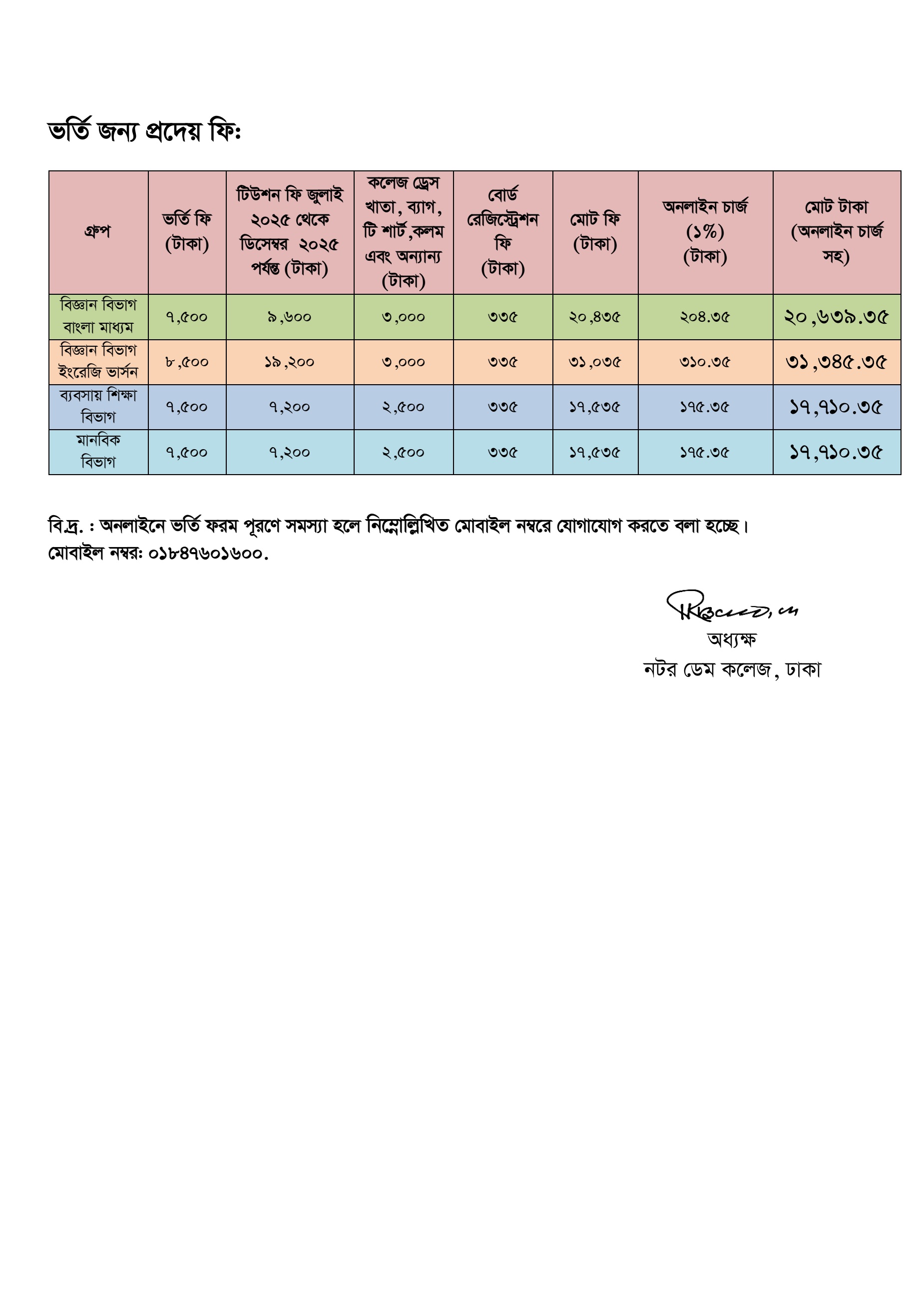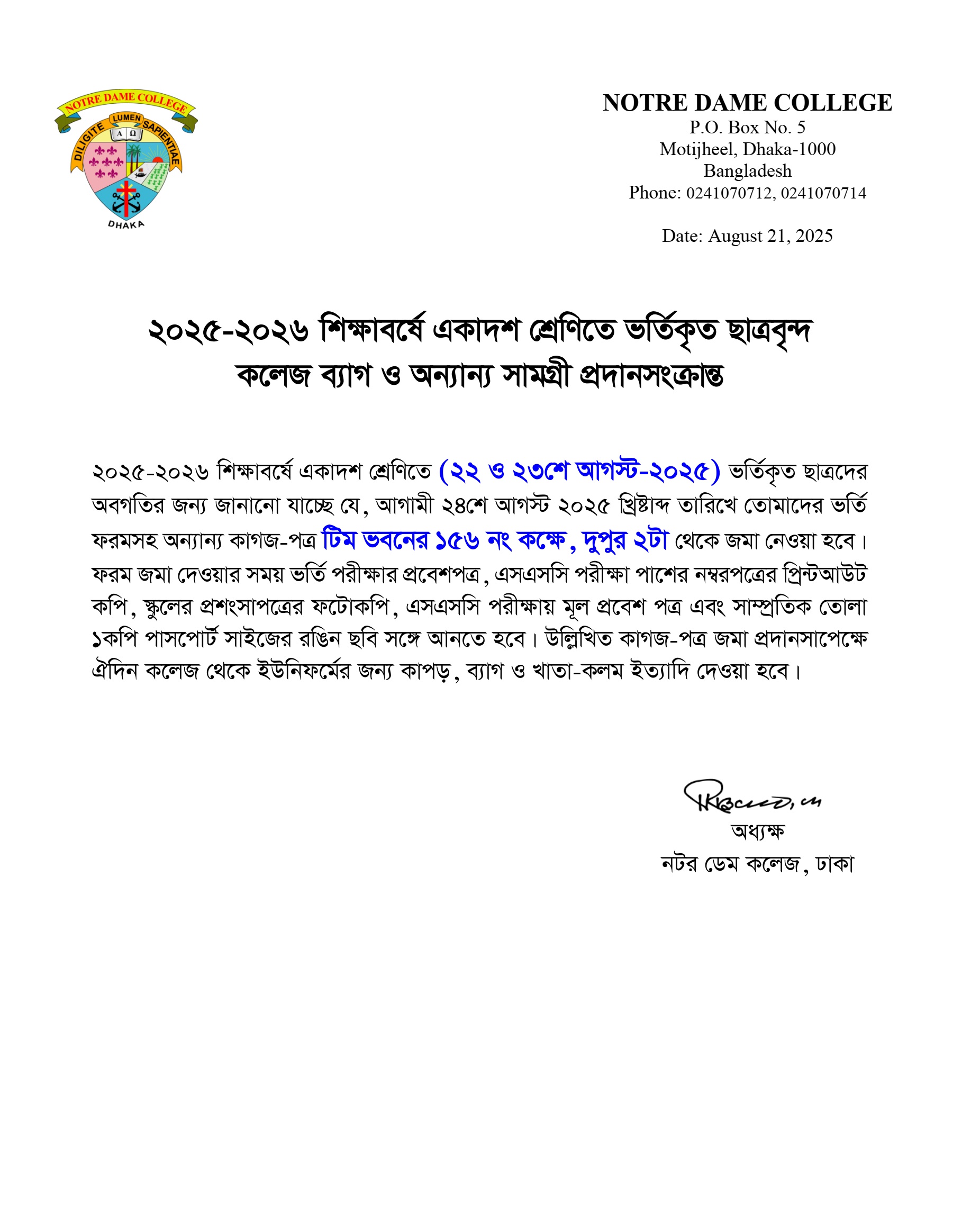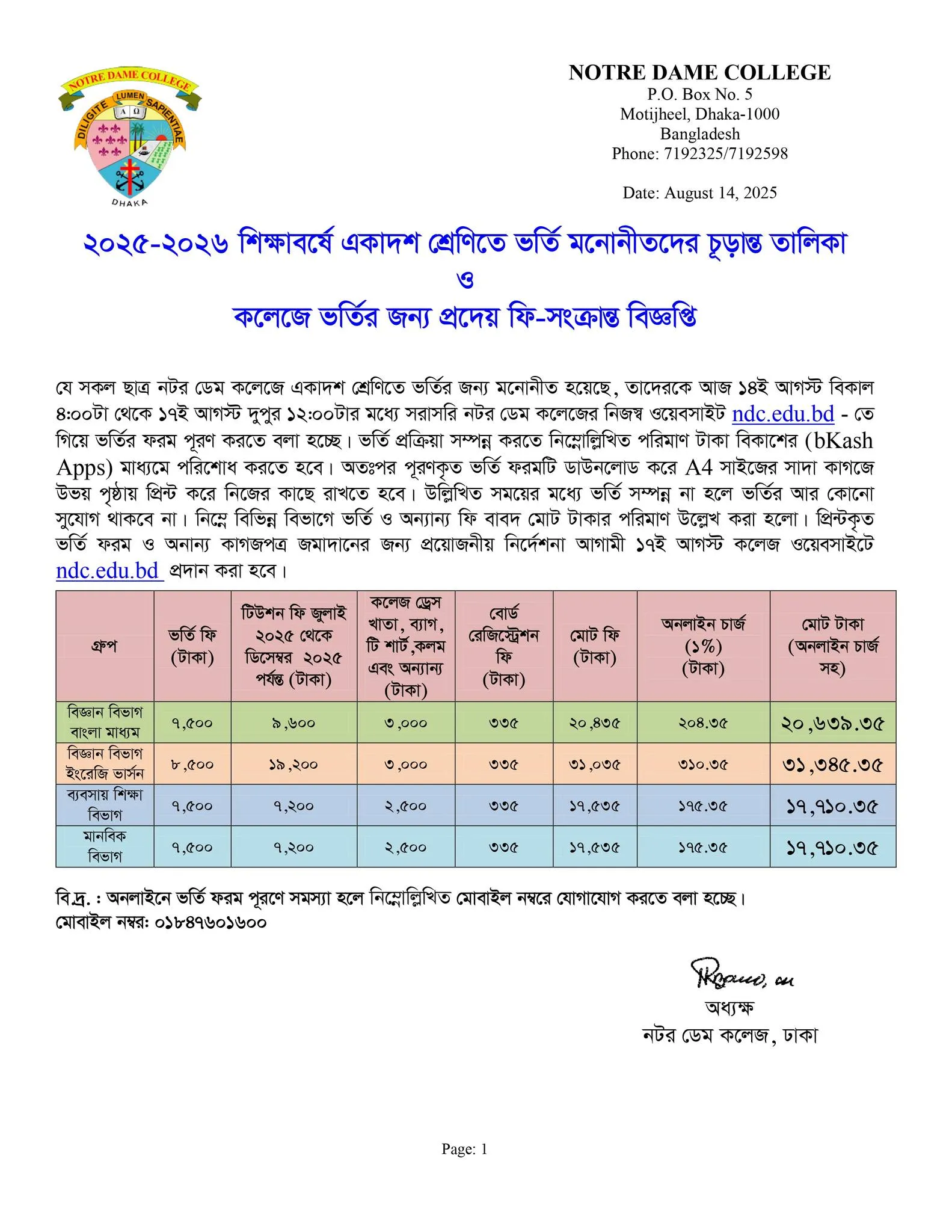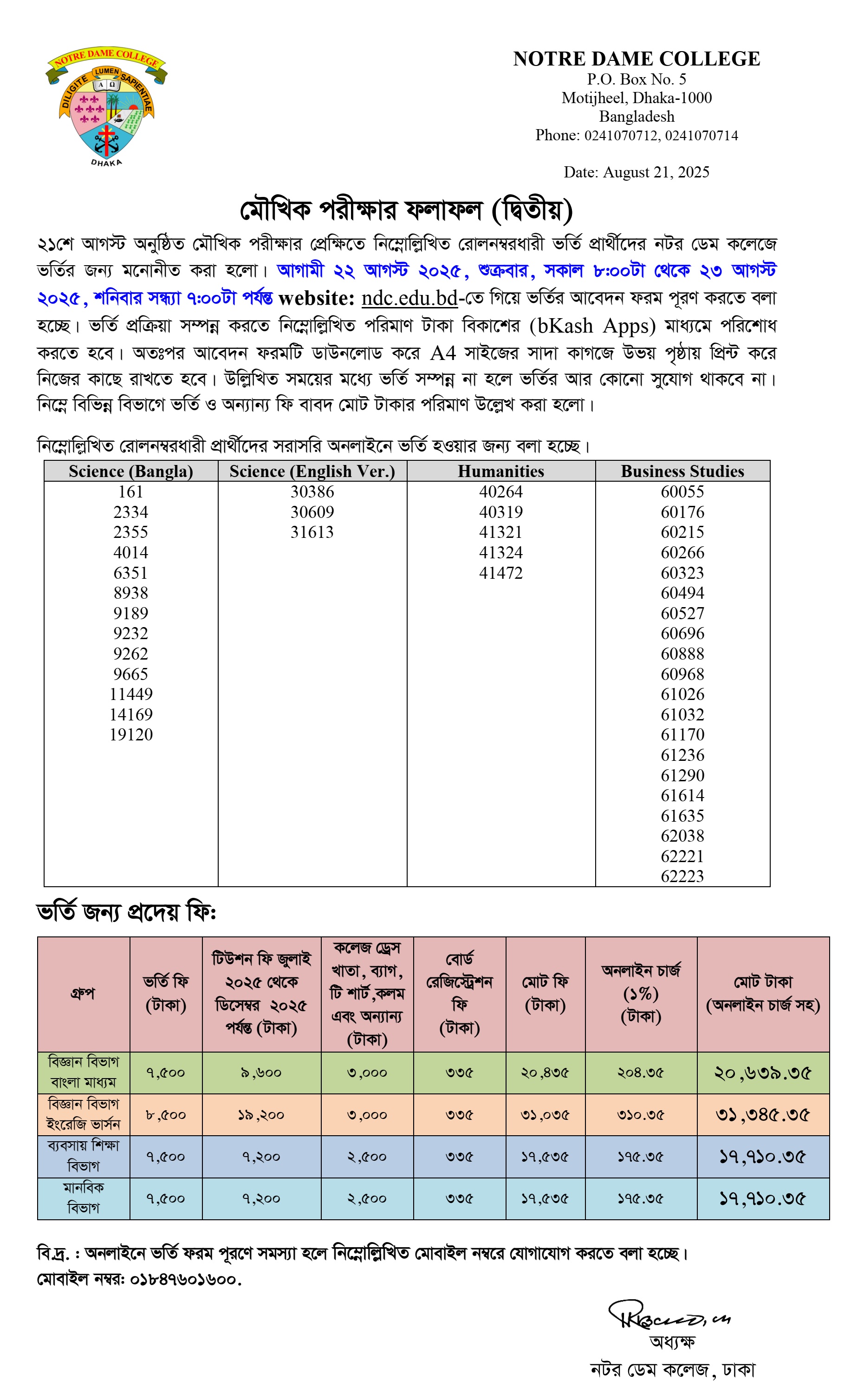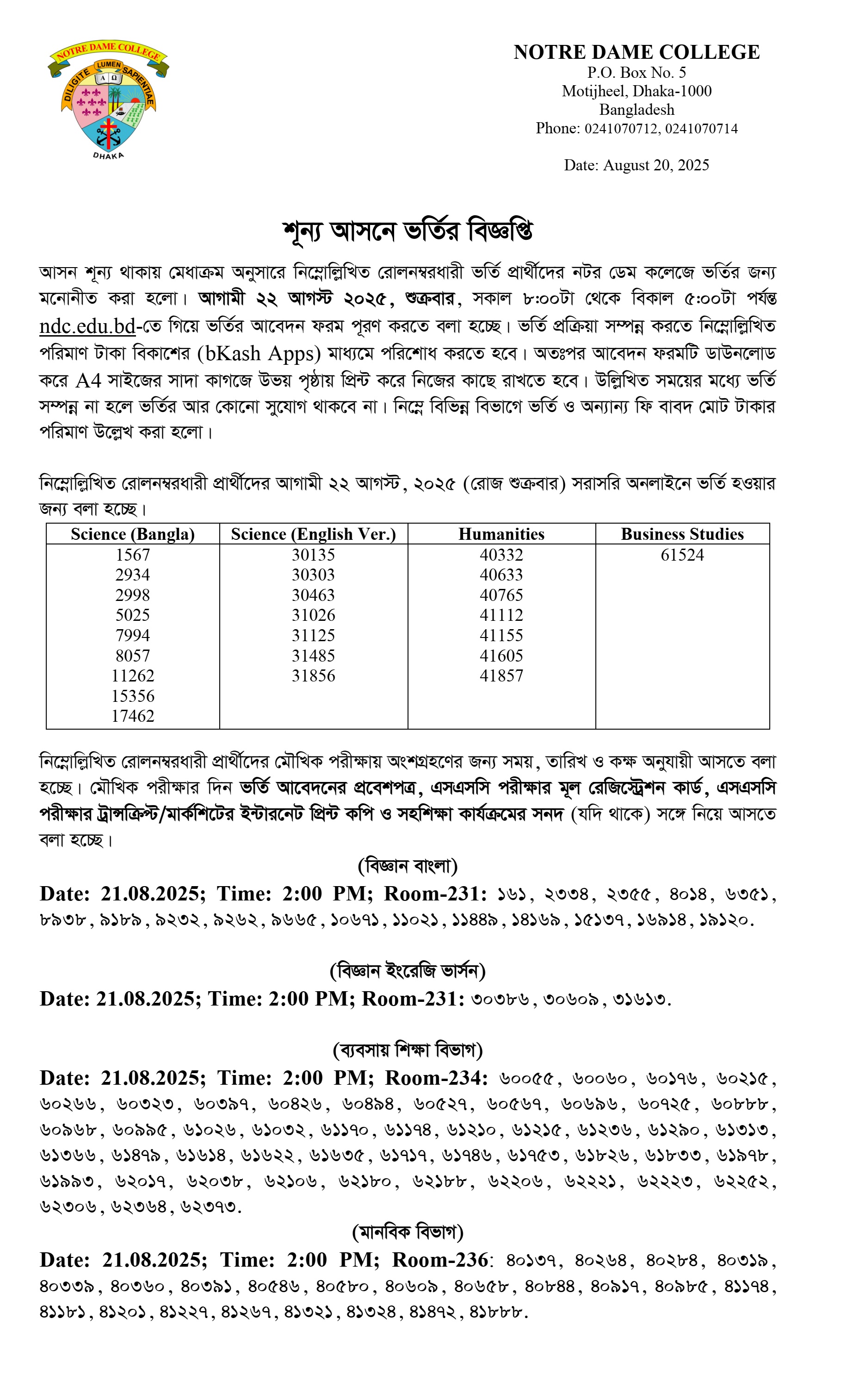 নটরডেম কলেজ ভর্তি রেজাল্ট ২০২৫ / নটরডেম কলেজ ভর্তি তথ্য ২০২৫