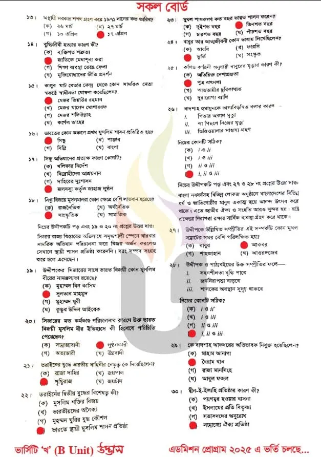 HSC 2025 Islamic History 2nd Paper MCQ Question and Answers