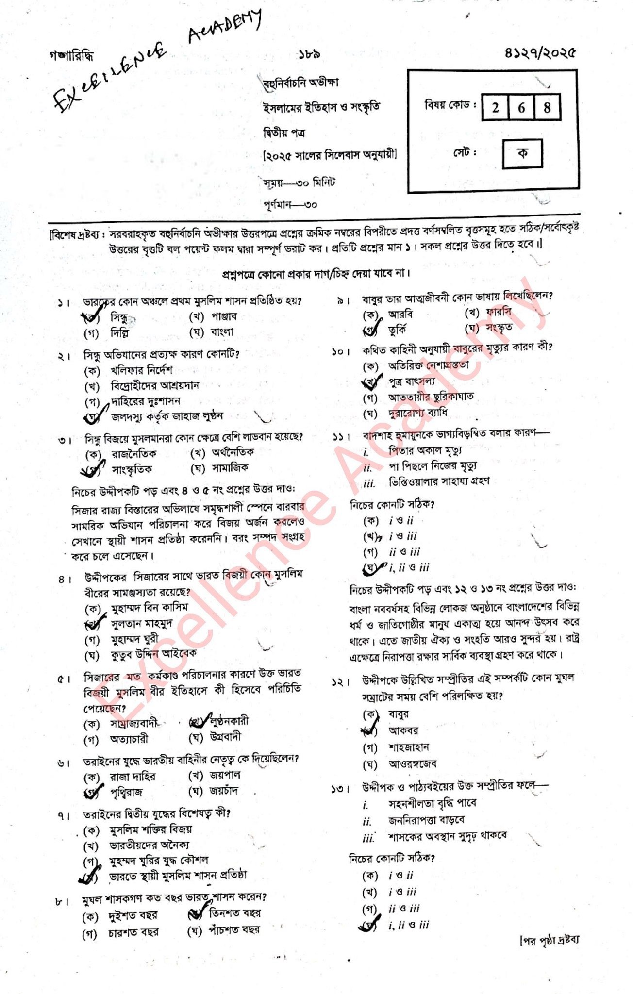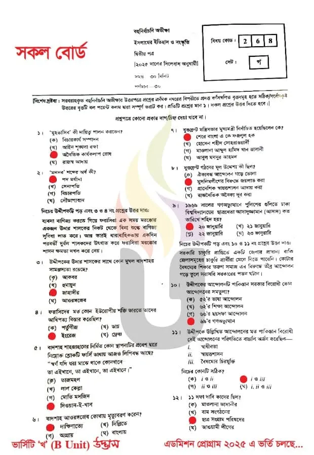 HSC Means Higher Secondary Certificate Exam, Islamic History and Culture 2nd Paper Means islamer itihas o sanskriti ditiyo potro and MCQ means Multiple-Choice Question. In this post you will find HSC Islamic History 2nd Paper Question Solve 2025. Islamic History 2nd Paper Subject Code is 268. In this exam students have to Answer 25 Marks MCQ Questions within 25 Minutes. Students have to Carefully fill up the OMR sheet with Exam Year, Roll Number, Registration Number, Subject Code, Set Code & Correct Answer.