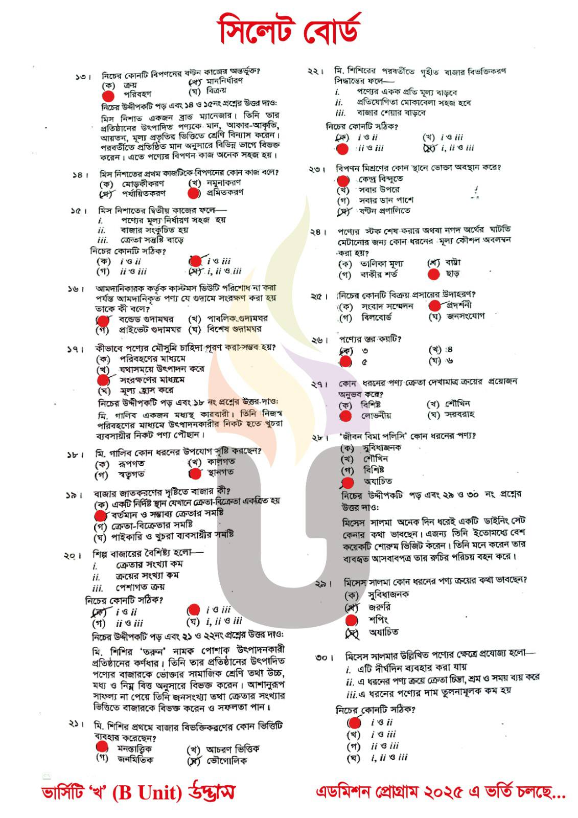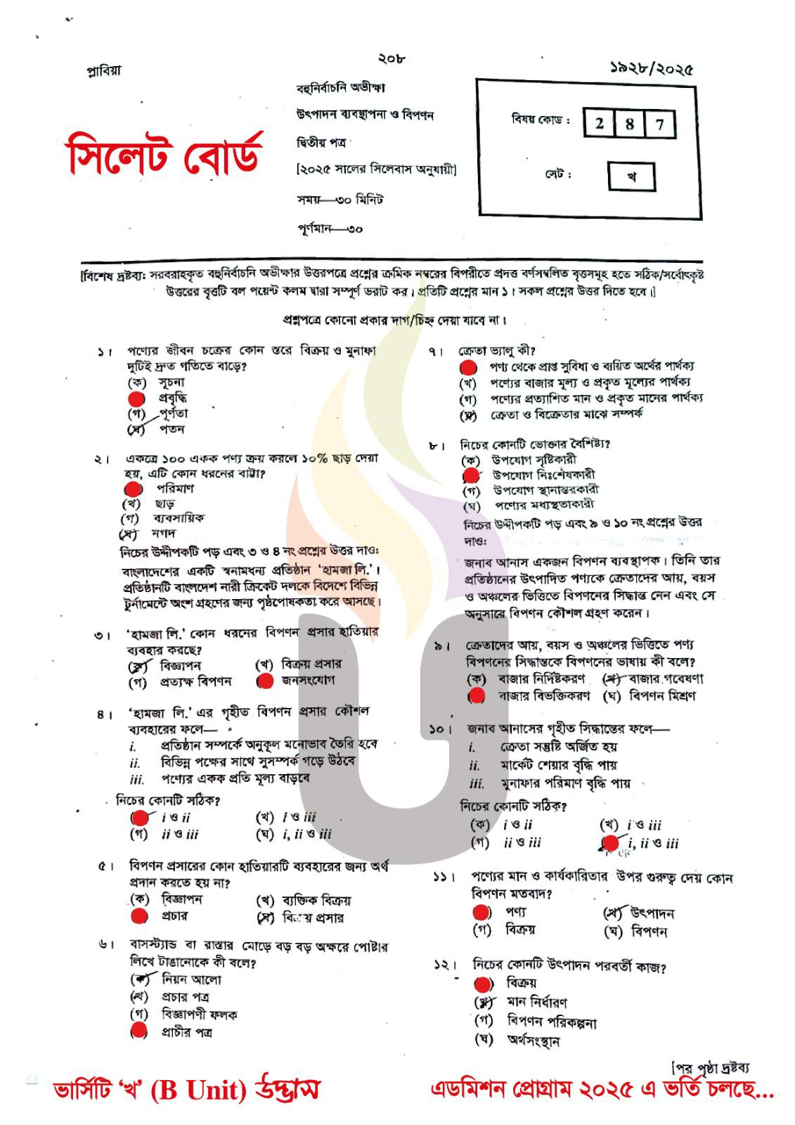 Production Management and Marketing 2nd Paper MCQ Exam Question Solution Sylhet Board HSC 2025