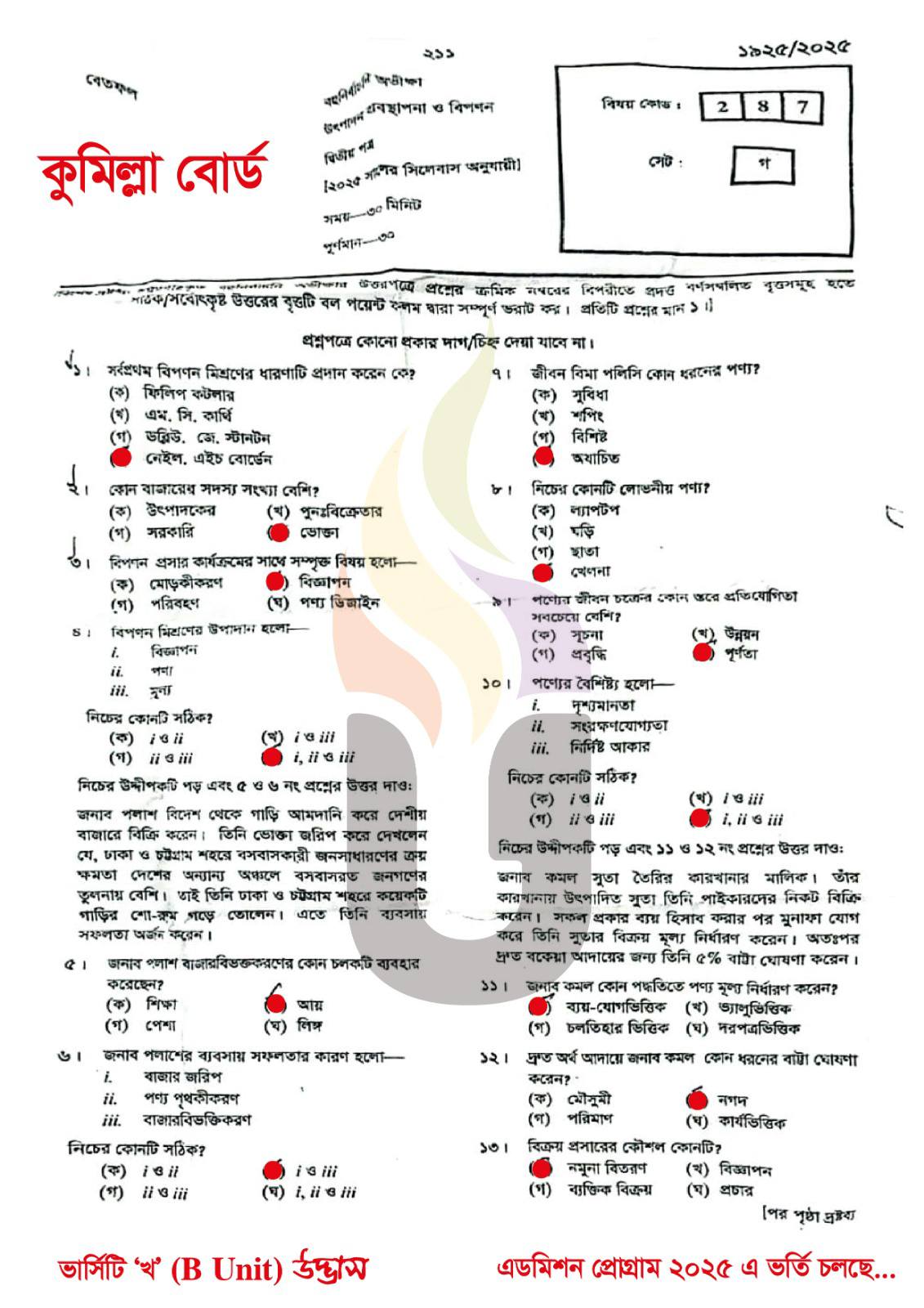 Brahmanbaria, Chandpur, Comilla, Feni, Lakshmipur, Noakhali District under Cumilla Education Board. So, If you are from these 6 Districts then your Cumilla Board Production Management and Marketing 2nd Paper MCQ Question Answer of HSC Exam 2025 will be found here.