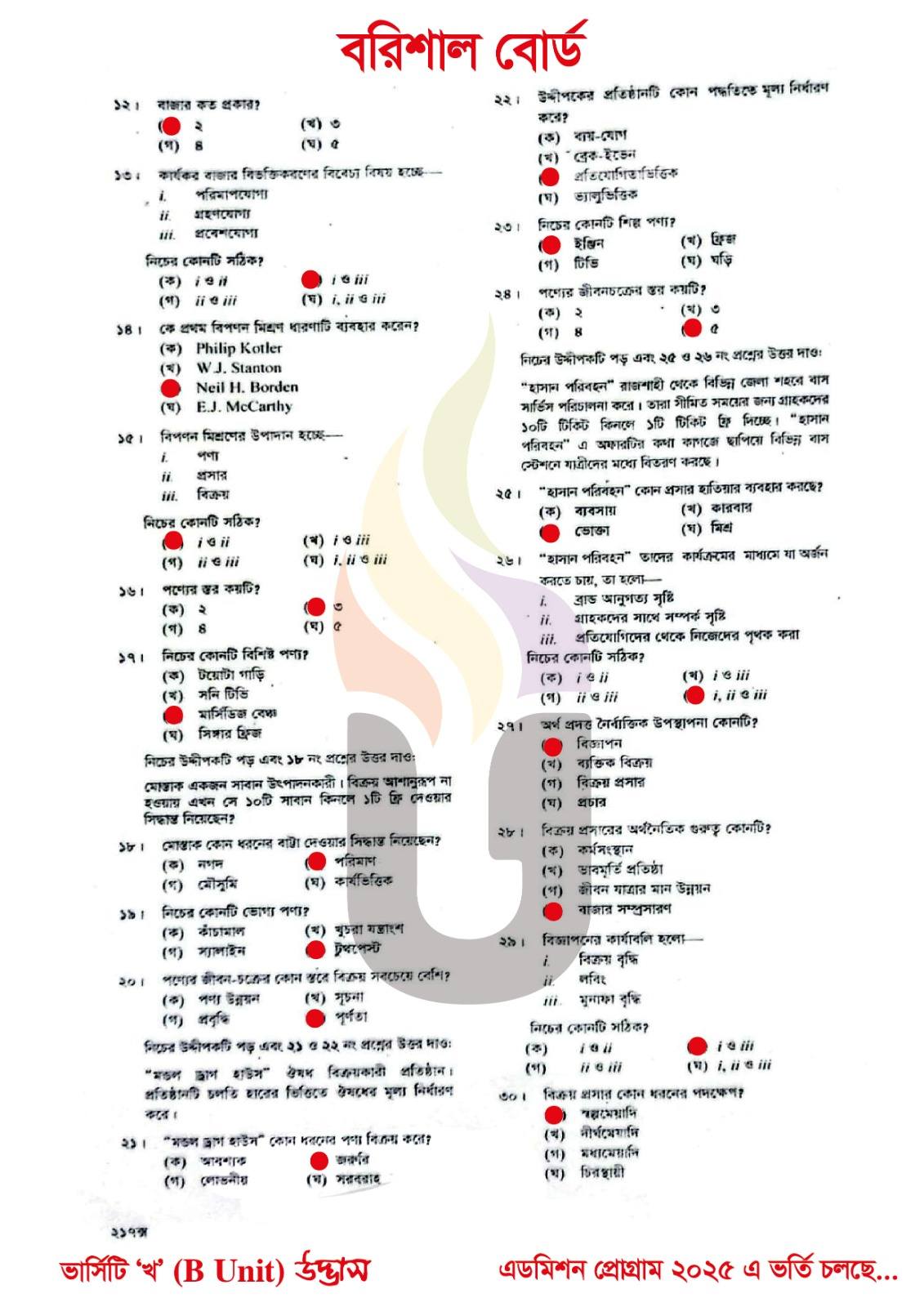 Production Management and Marketing 2nd Paper MCQ Question solution Barisal Board HSC 2025
