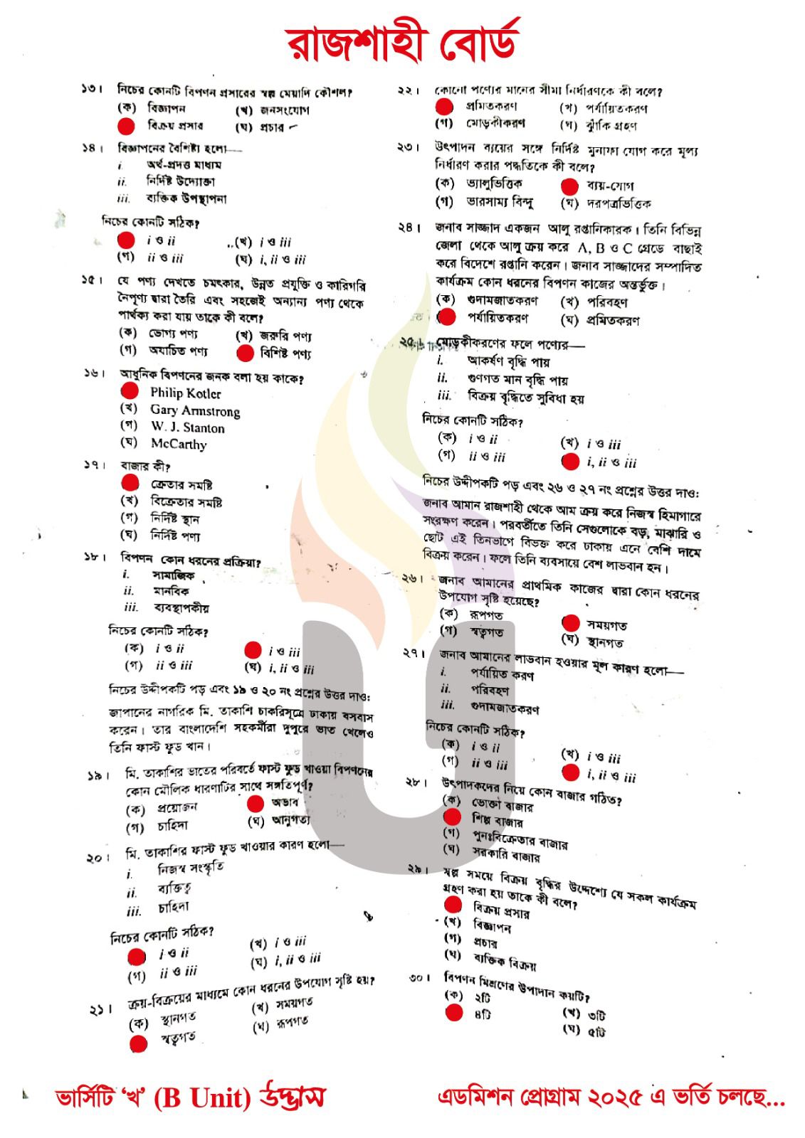 রাজশাহী বোর্ড এইচএসসি উৎপাদন ব্যবস্থাপনা ও বিপণন ২য় পত্র এমসিকিউ প্রশ্ন সমাধান ২০২৫