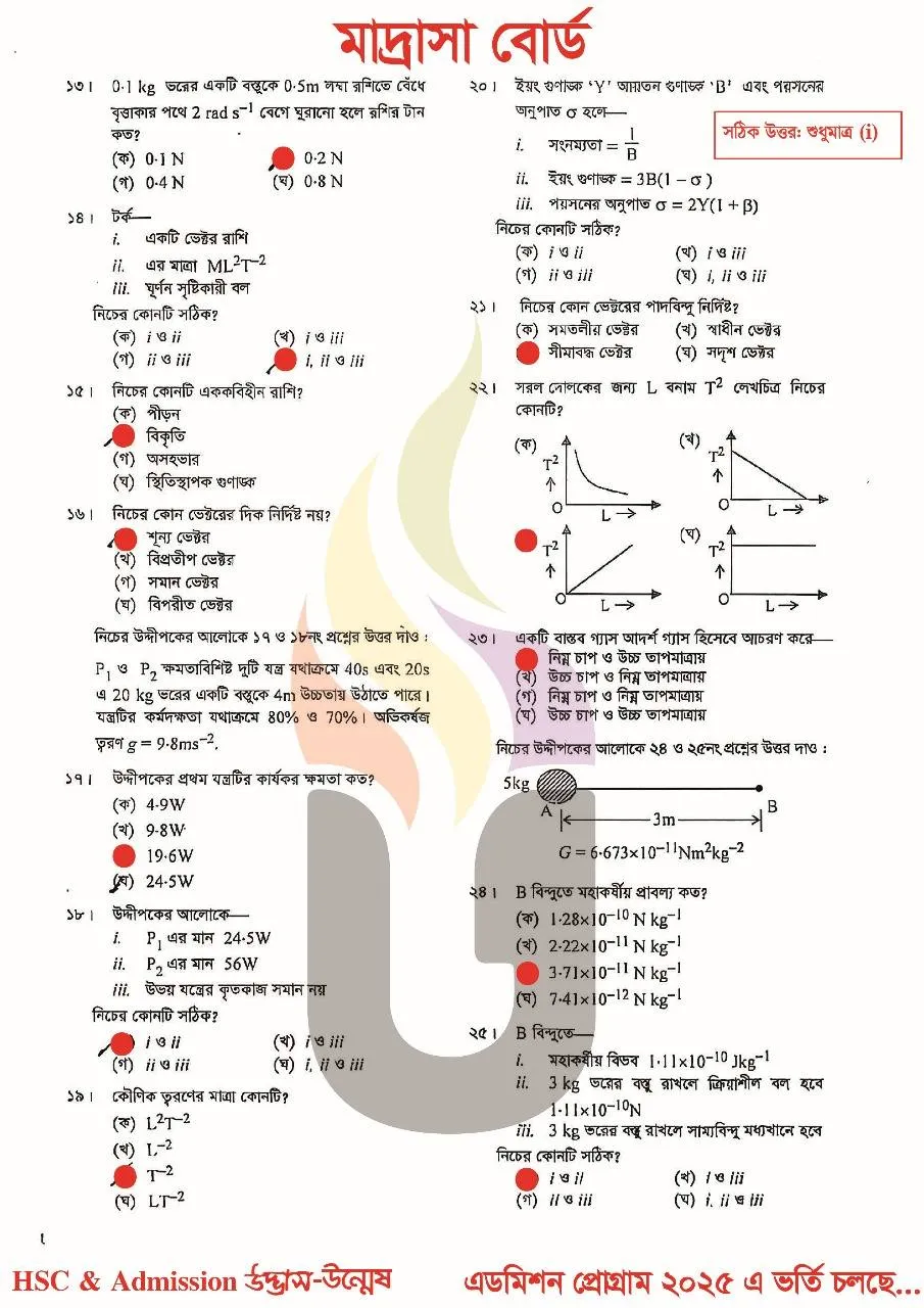 আলিম পদার্থ বিজ্ঞান ১ম পত্র পরীক্ষার উত্তর ২০২৫