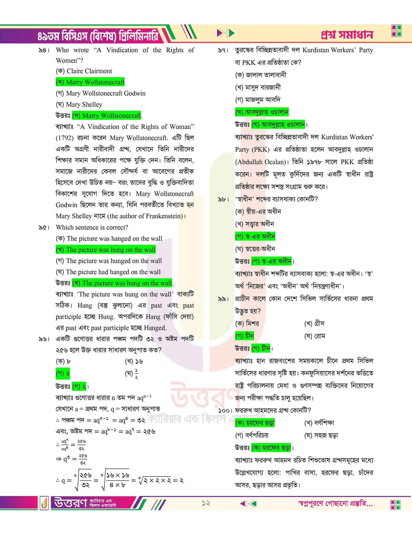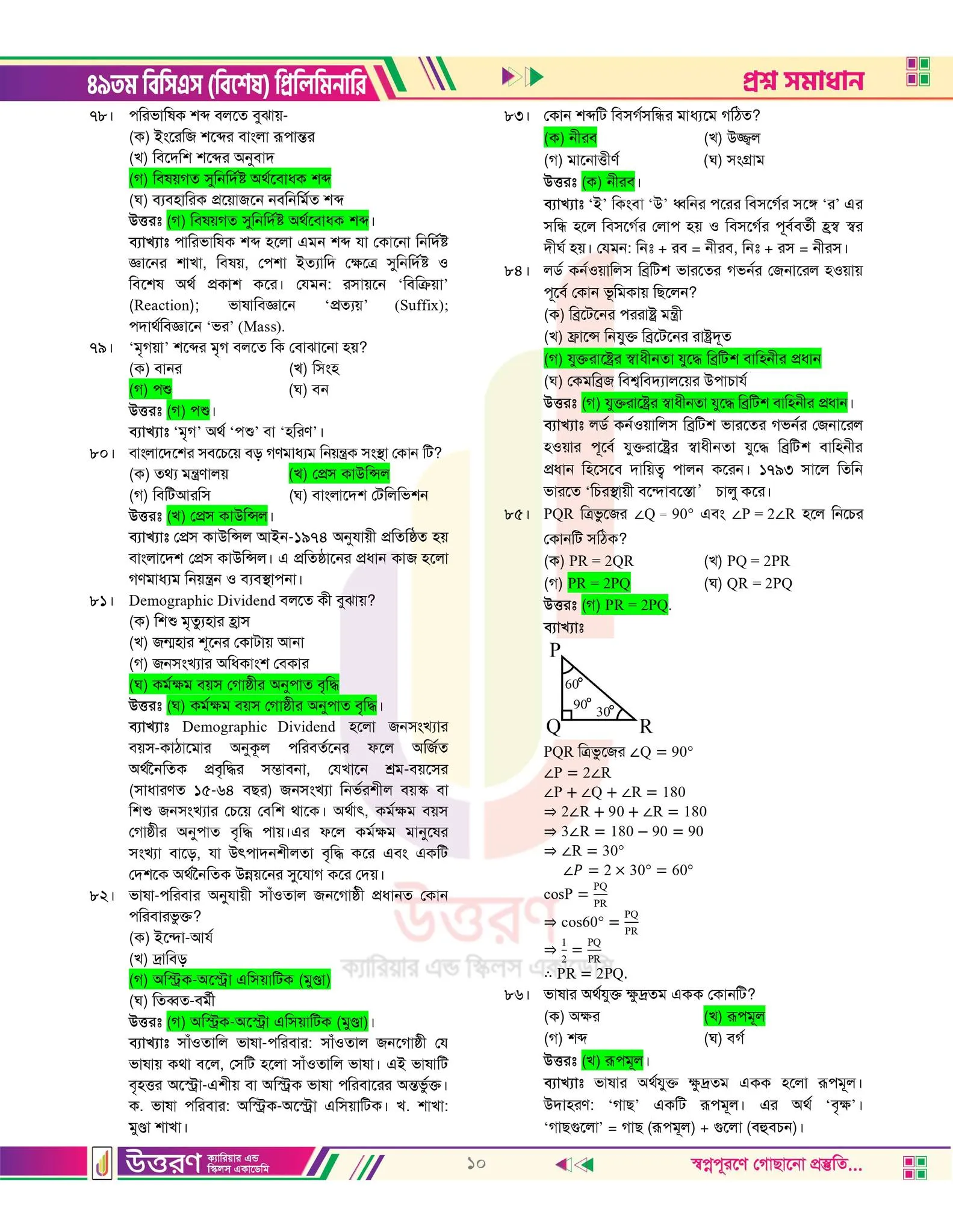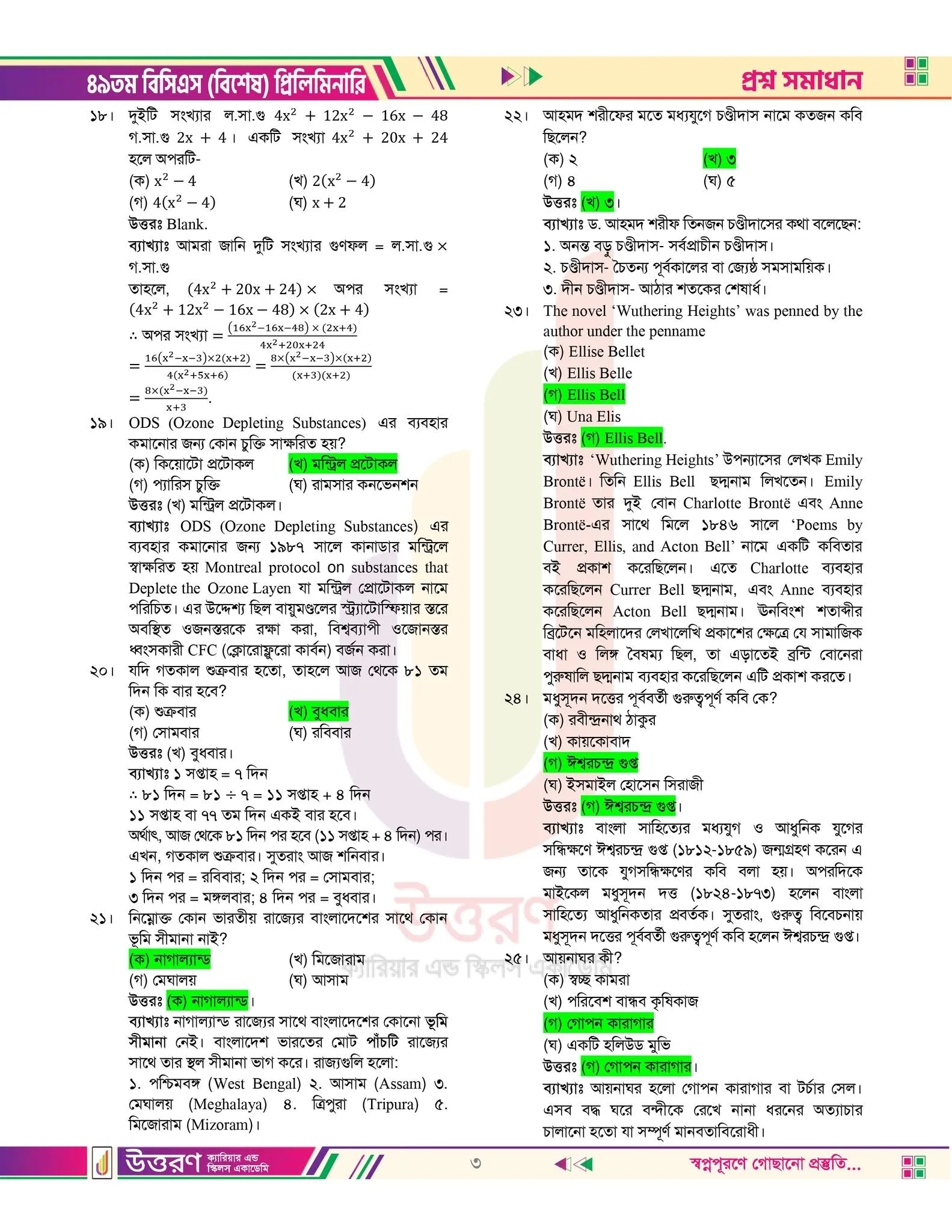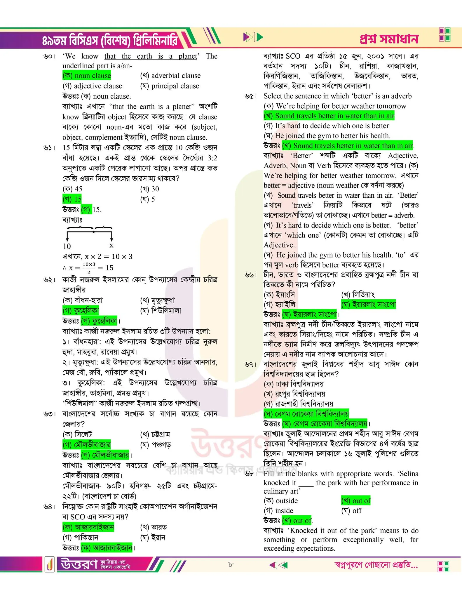 49 tomo bcs er MCQ prosner uttorpotro chai