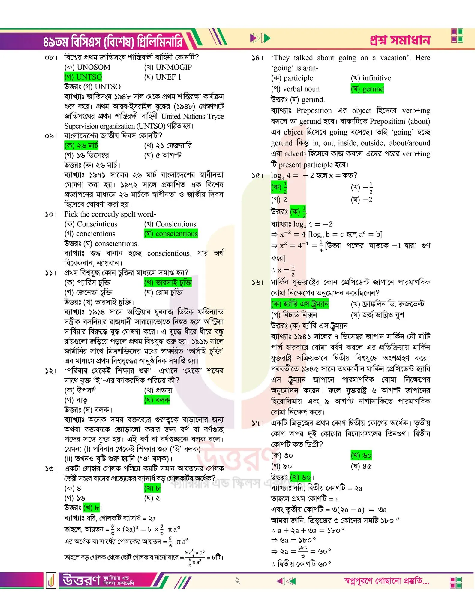 ৪৯তম বিসিএস প্রিলি প্রশ্ন সমাধান ২০২৫