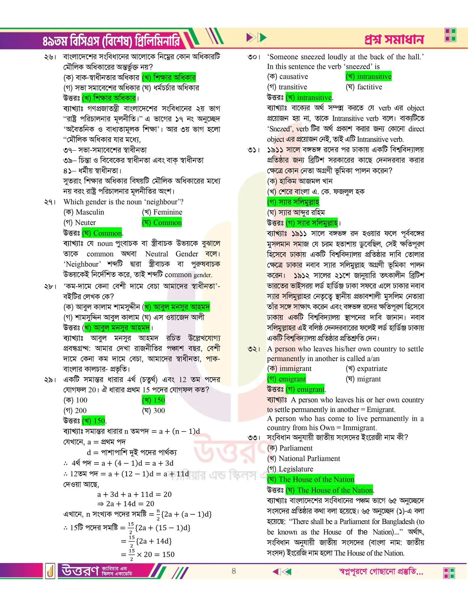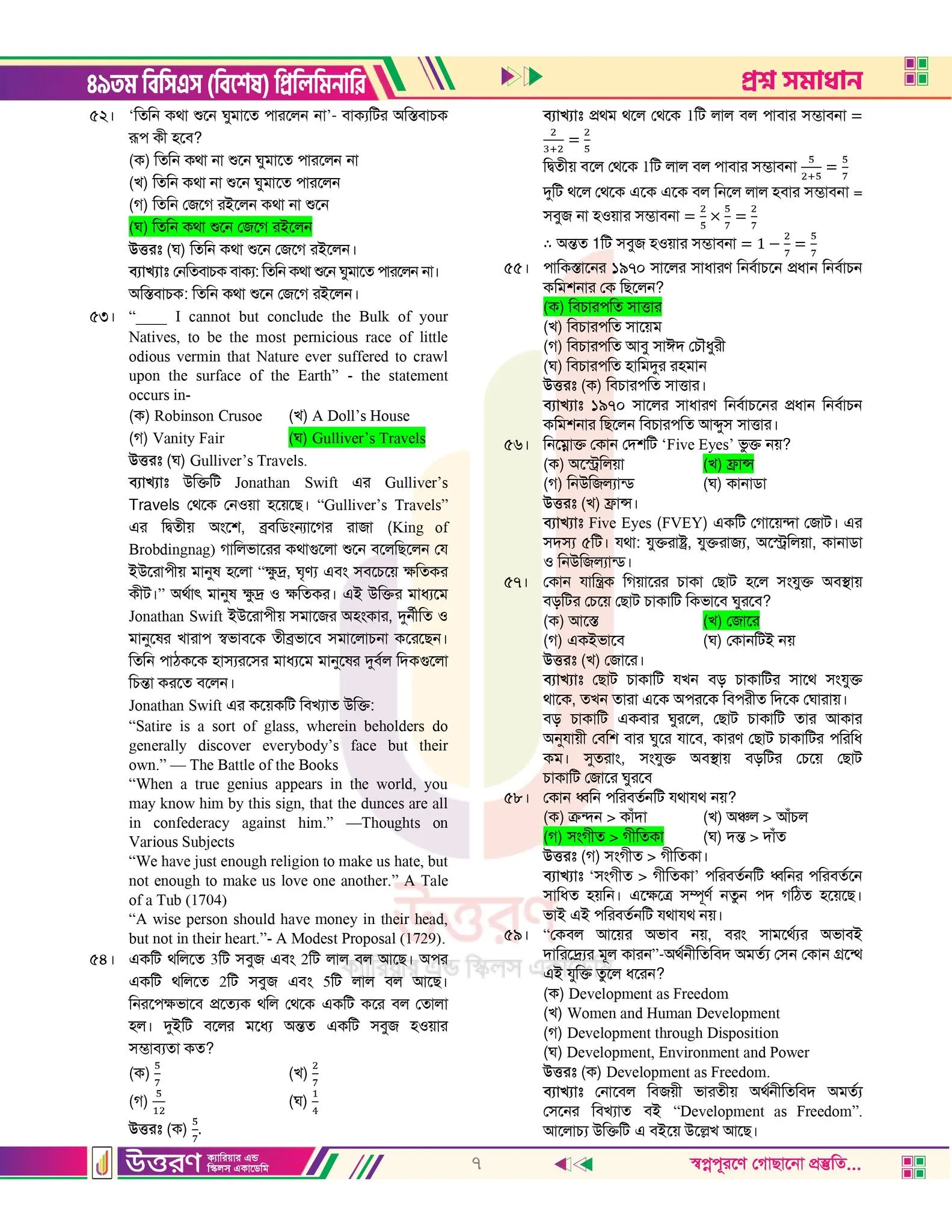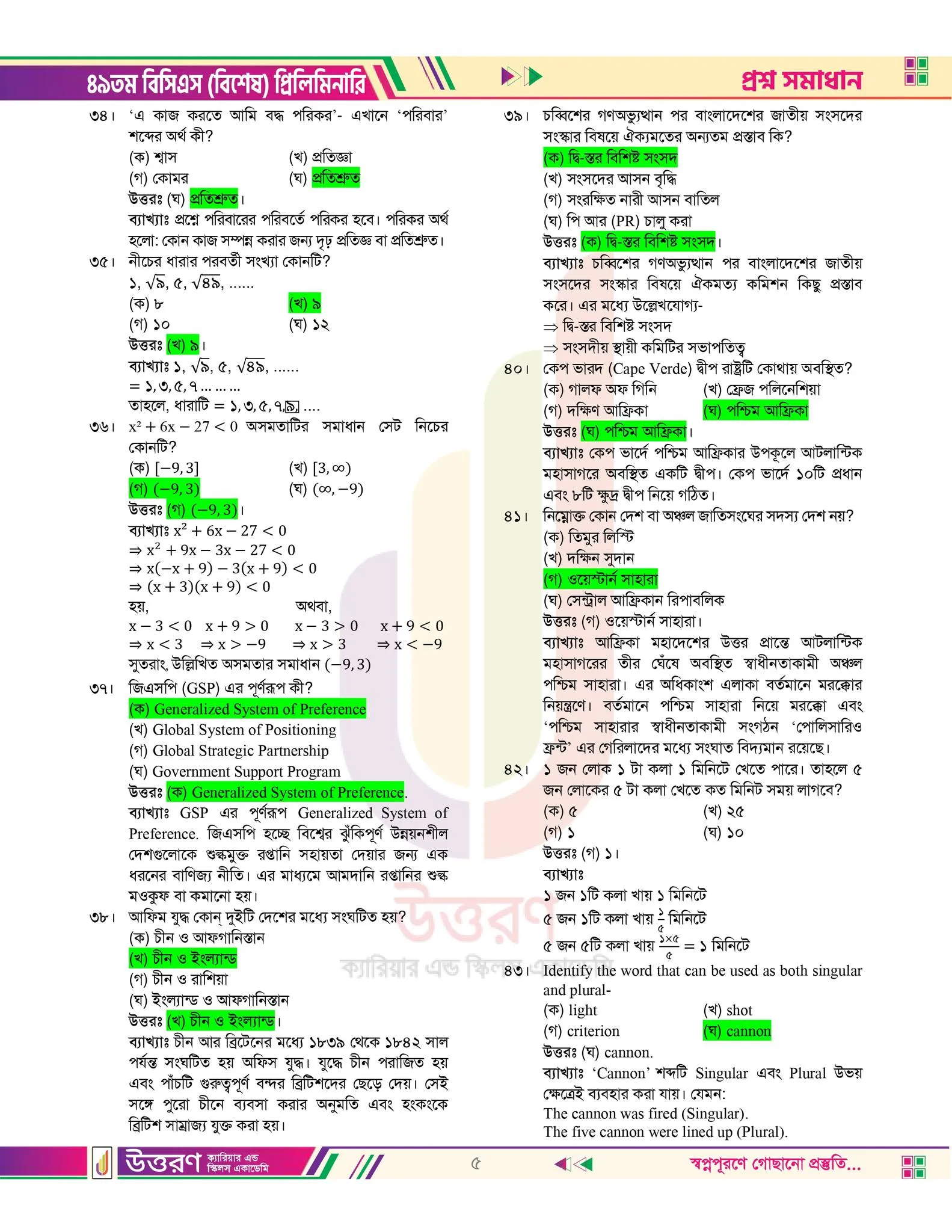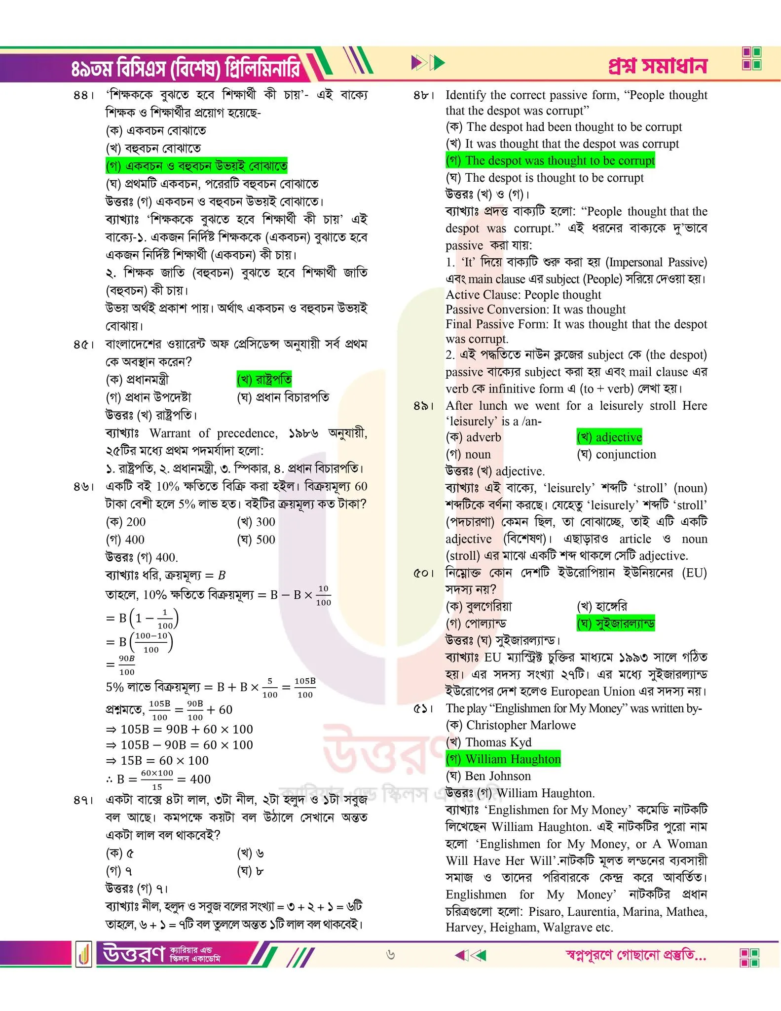 ৪৯ তম বিসিএস এর প্রস্নপত্রের উত্তর চাই