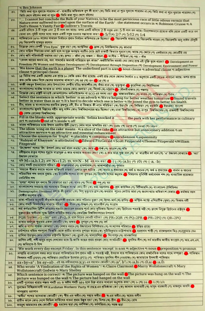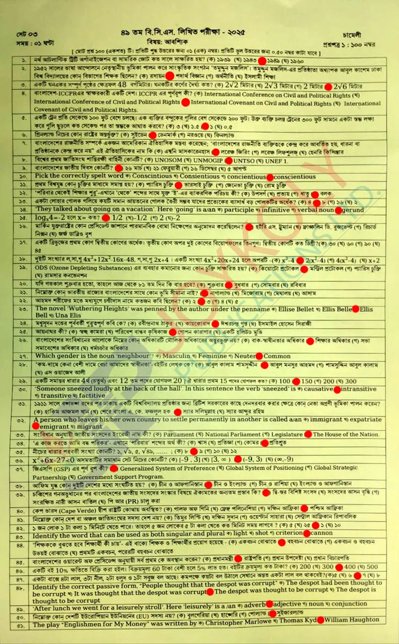 ৪৯তম বিসিএস প্রিলি প্রশ্ন ২০২৫ (49th BCS Preliminary Question)