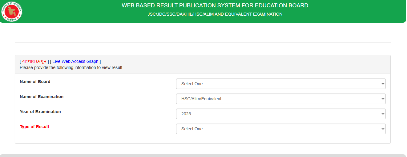 - Result Type অপশন থেকে Individual Result সিলেক্ট করতে হবে।