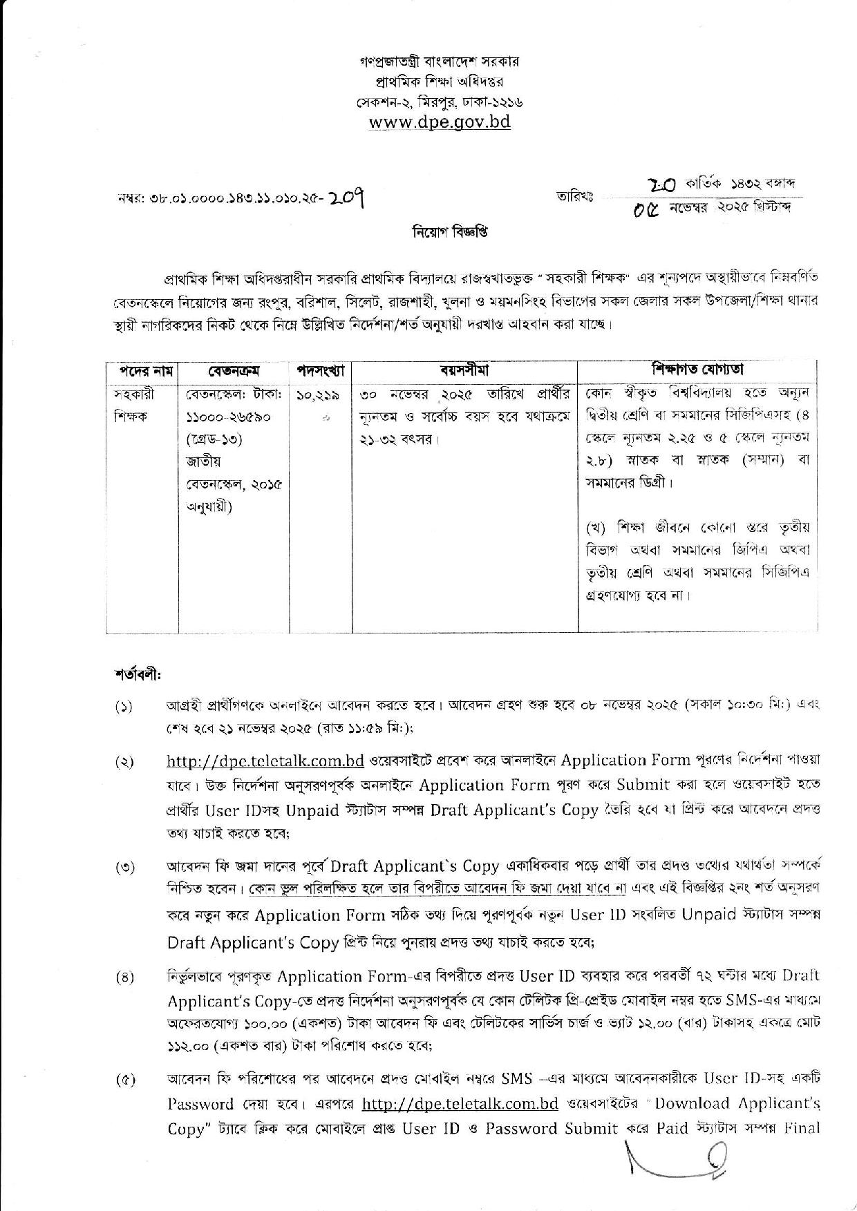 | বিজ্ঞপ্তি প্রকাশের তারিখ | ৫ নভেম্বর ২০২৫ |