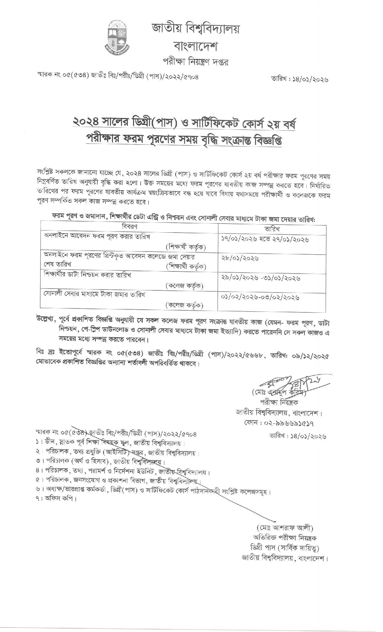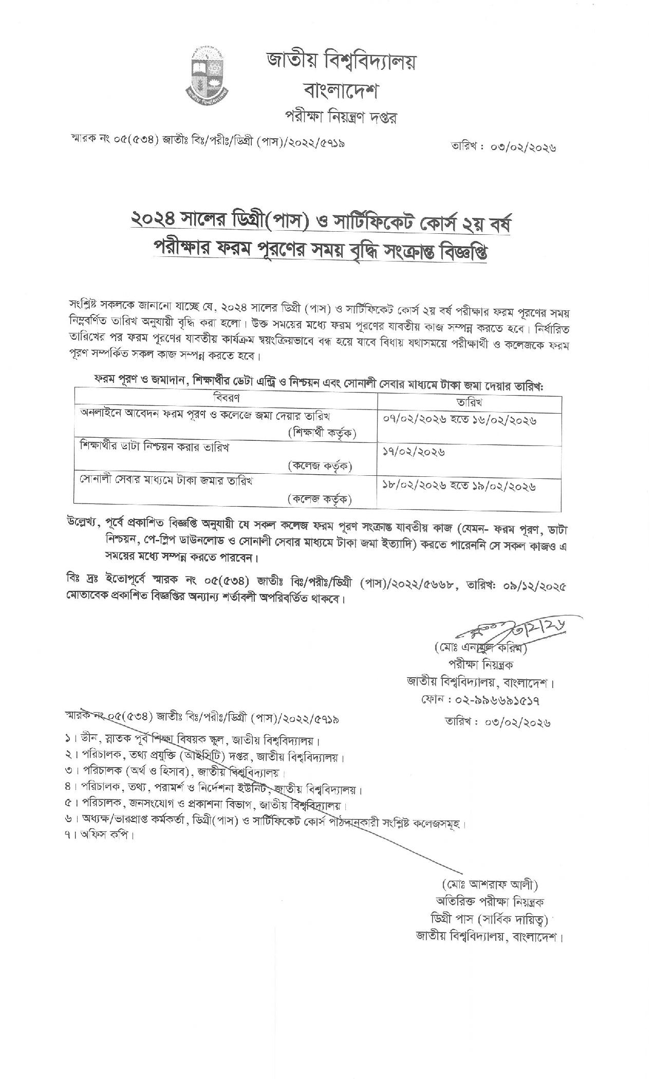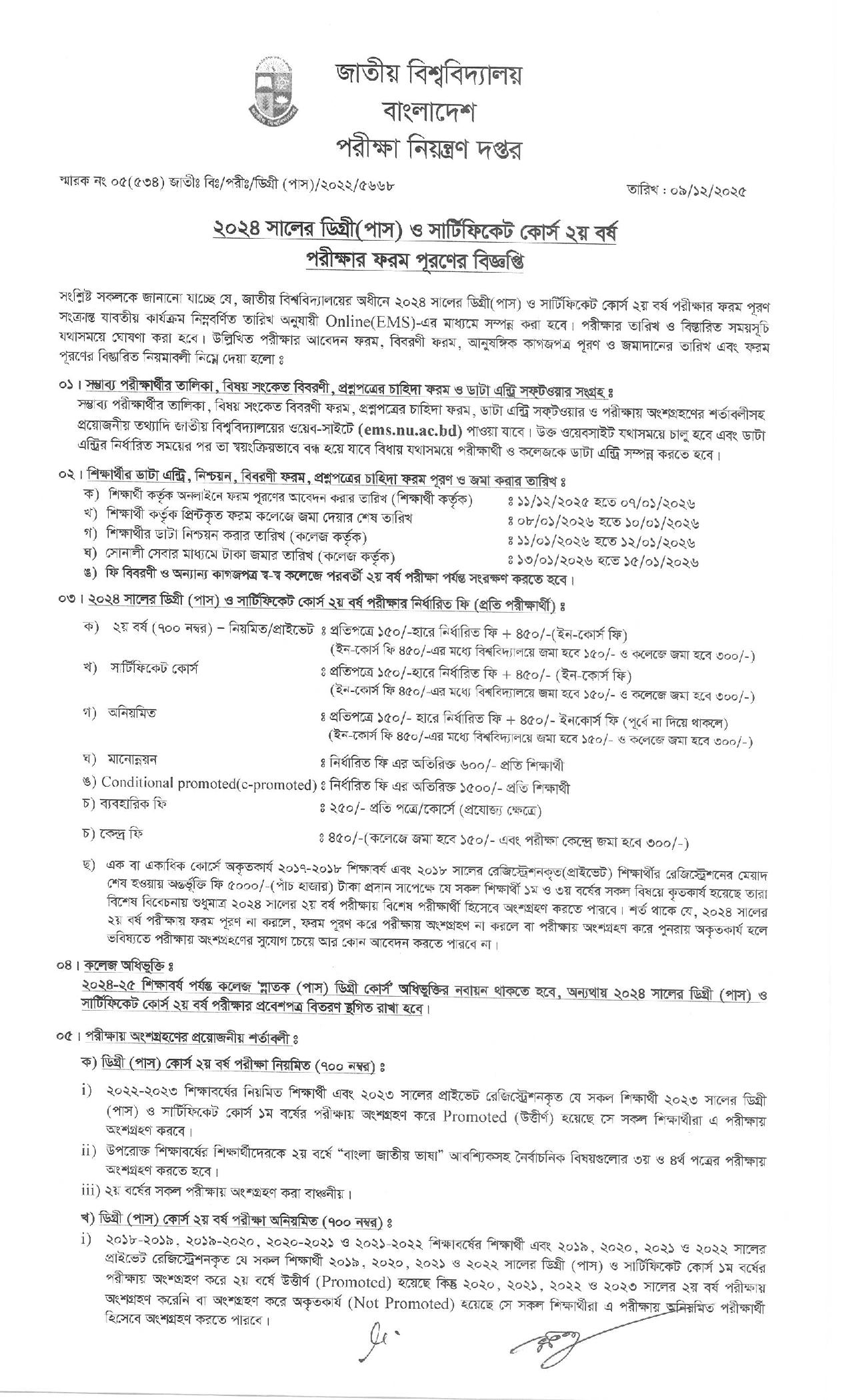 জাতীয় বিশ্ববিদ্যালয়ের ডিগ্রি পাস ও সার্টিফিকেট কোর্স ২য় বর্ষ পরীক্ষার ফরম পূরণের বিজ্ঞপ্তি ২০২৫