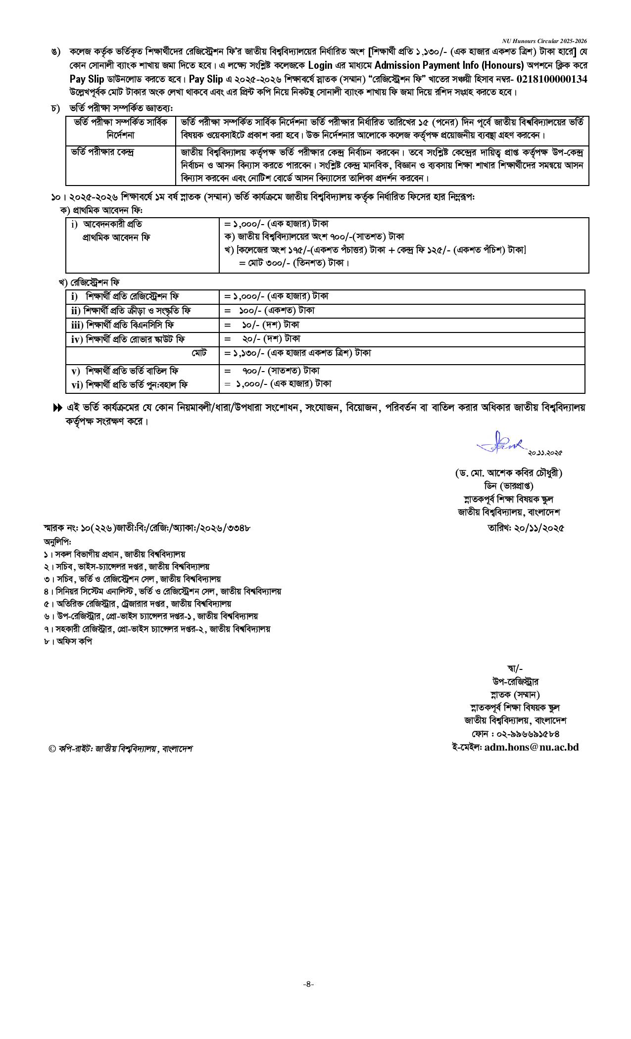 জাতীয় বিশ্ববিদ্যালয় অনার্স ভর্তি সার্কুলার ২০২৬