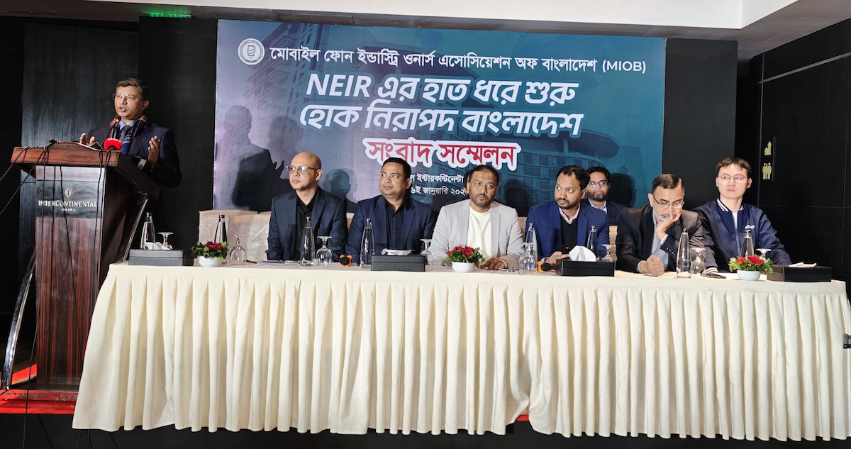 দেশের মোবাইল ফোন শিল্পে স্বচ্ছতা জোরদার, ভোক্তা সুরক্ষা নিশ্চিতকরণ এবং একটি নিরাপদ ডিজিটাল পরিবেশ গড়ে তোলার লক্ষ্যে বাংলাদেশ মোবাইল ফোন ইন্ডাস্ট্রি ওনার্স এ্যাসোসিয়েশন (এমআইওবি) আজ একটি সংবাদ সম্মেলনের আয়োজন করেছে। রাজধানীর ইন্টারকন্টিনেন্টাল ঢাকা হোটেলে অনুষ্ঠিত এই সংবাদ সম্মেলনের প্রতিপাদ্য ছিল – ‘এনইআইআর-এর হাত ধরে শুরু হোক নিরাপদ বাংলাদেশ’।