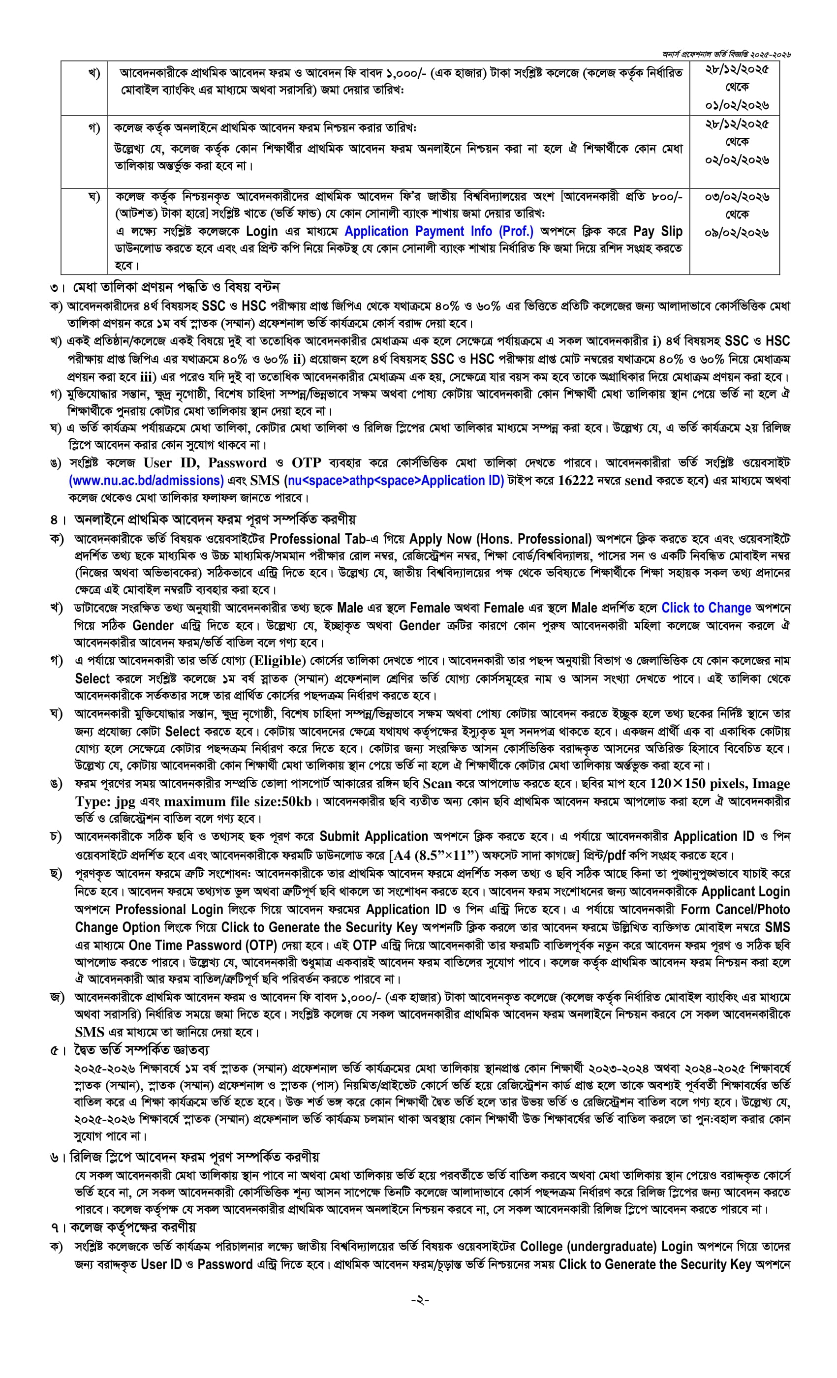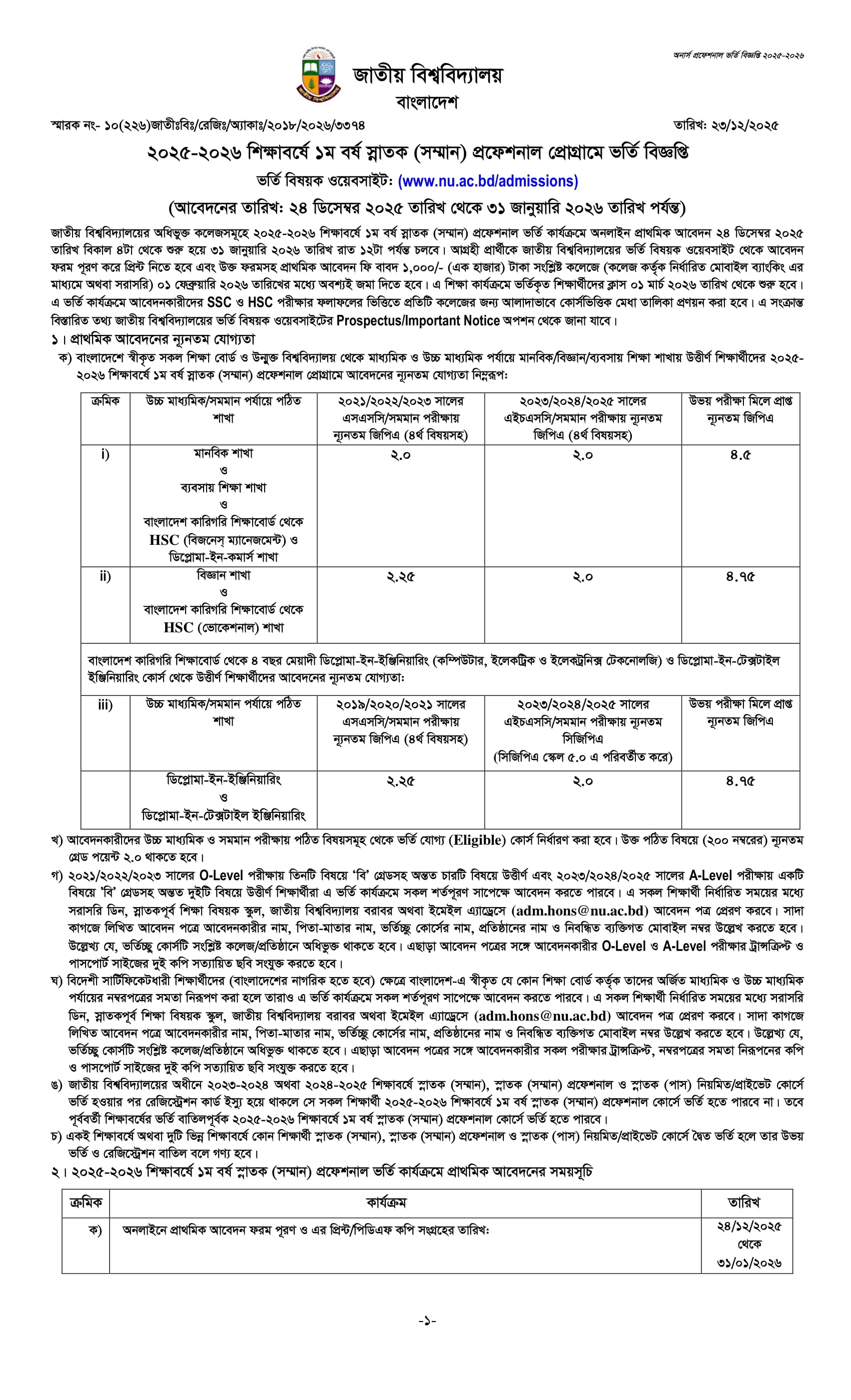 অনার্স প্রফেশনাল ভর্তি বিজ্ঞপ্তি ২০২৬ সার্কুলার