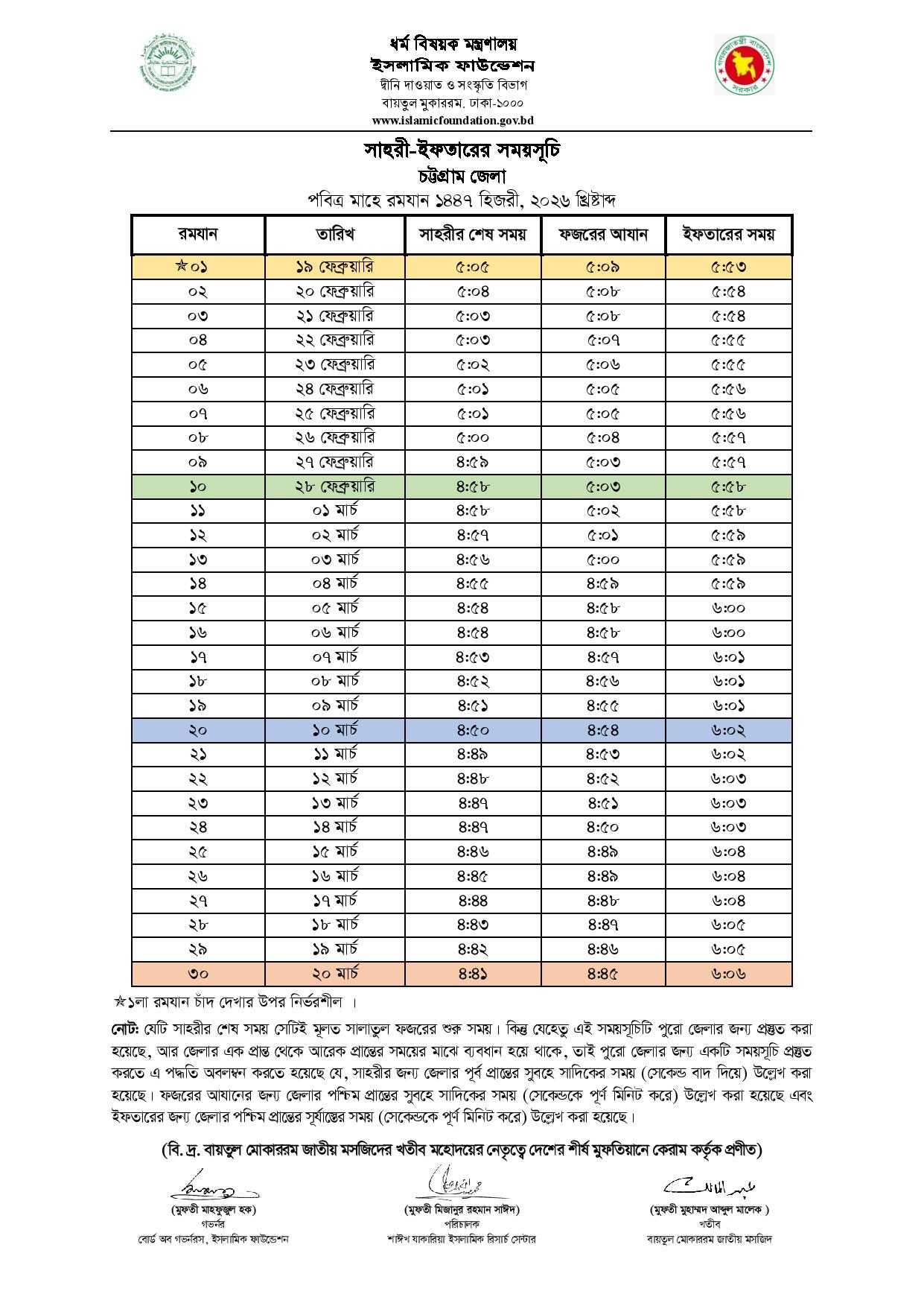 | পবিত্র রমজান ২০২৬ | ক্যালেন্ডার ডাউনলোড করুন (চট্রগ্রাম জেলা) |